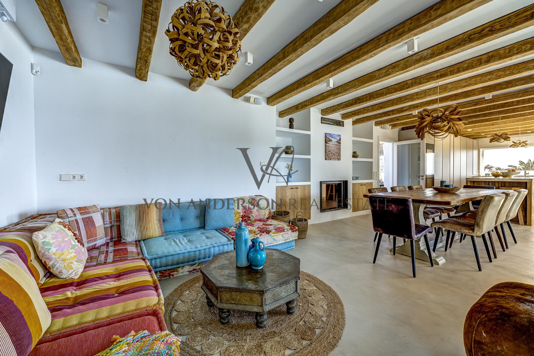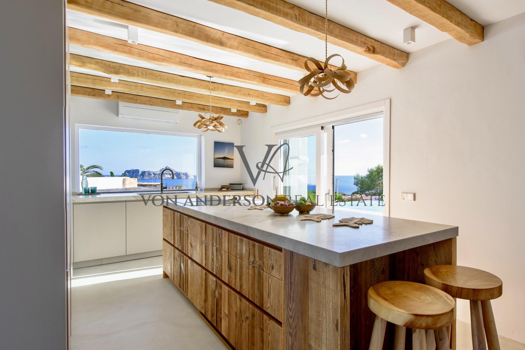 Diese besondere Villa strahlt eine warme, einladende Atmosphäre aus, die durch einen atemberaubenden Blick auf den berühmten Es Vedra-Felsen und das Mittelmeer ergänzt wird.