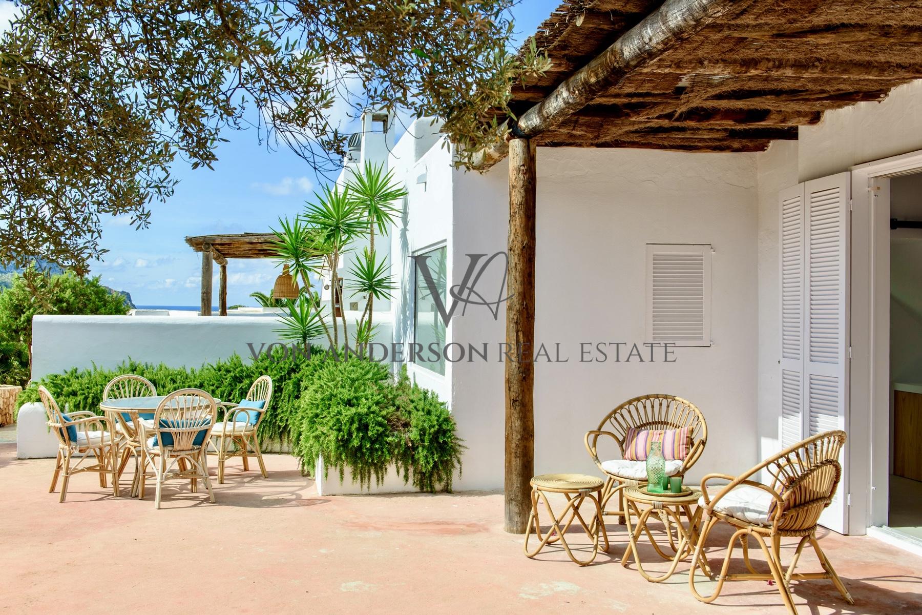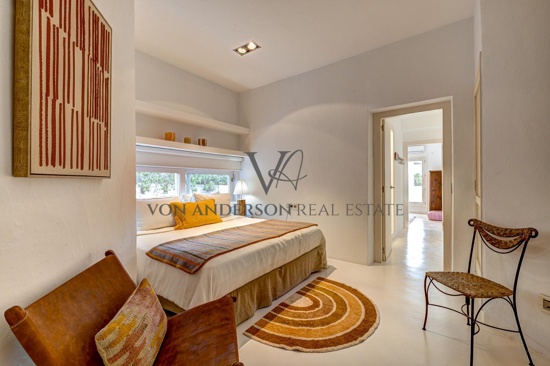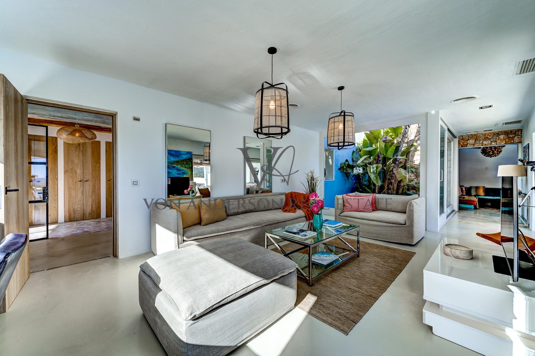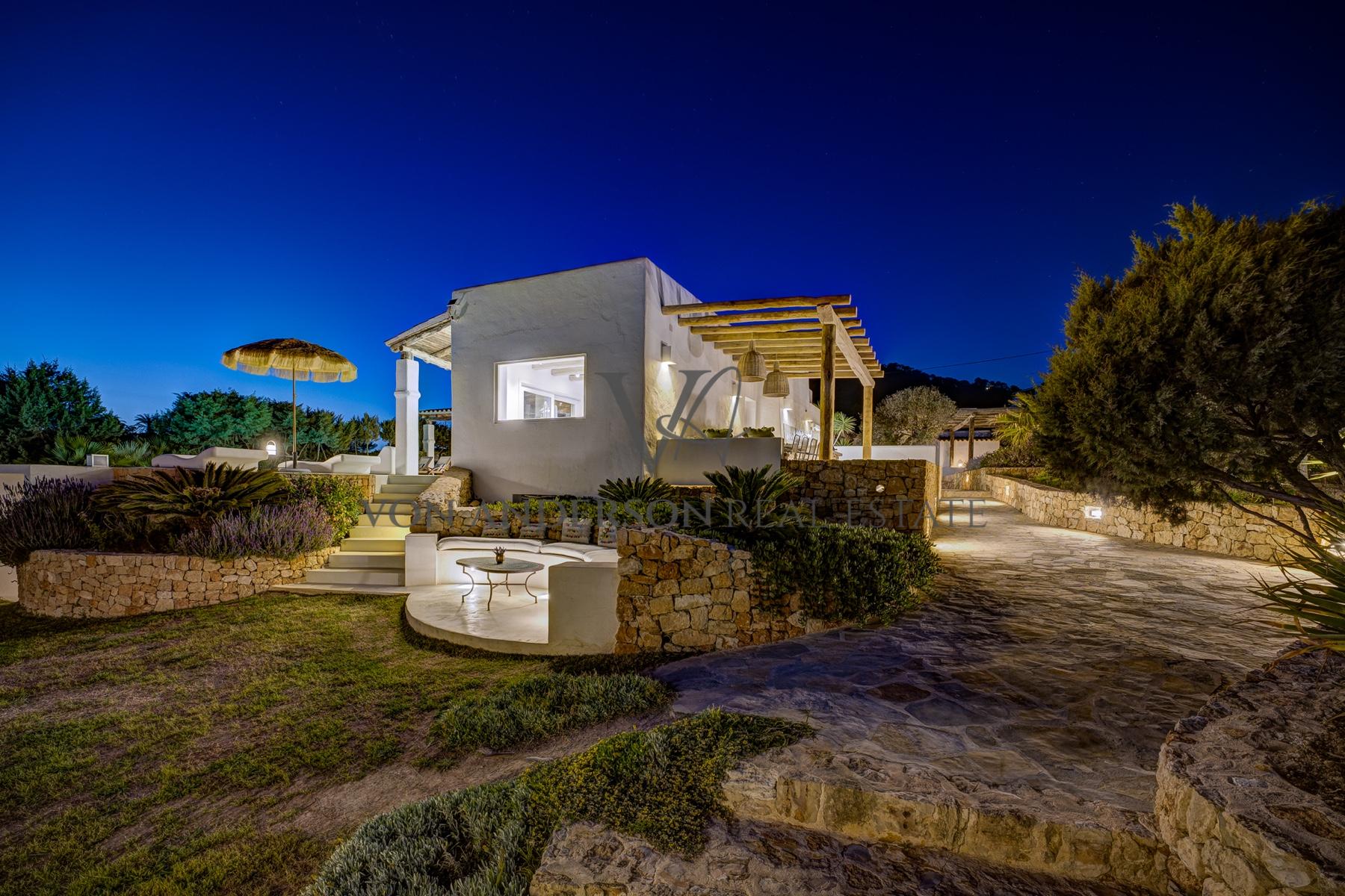 Diese wunderschön renovierte Villa, die nur einen kurzen Spaziergang von der ruhigen Bucht Cala Carbo entfernt liegt, verbindet authentischen ibizenkischen Charme mit modernem Luxus. Mit einem atemberaubenden Blick auf das Meer und unvergessliche Sonnenuntergänge für die Hälfte des Jahres, ist das Anwesen vor der ikonischen Kulisse von Es Vedra, die Schaffung einer unvergleichlichen Kulisse gesetzt.