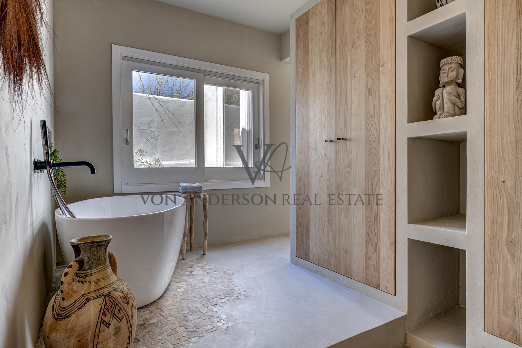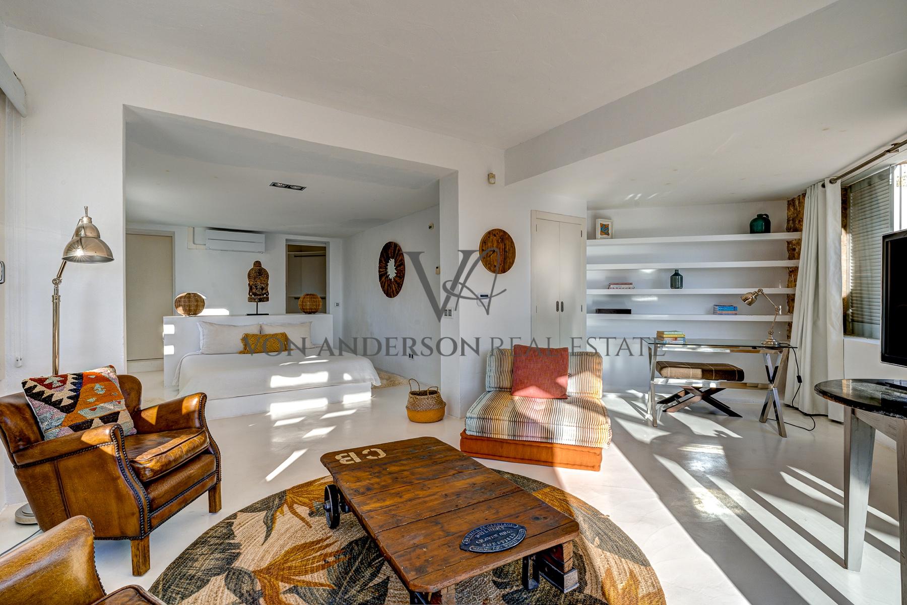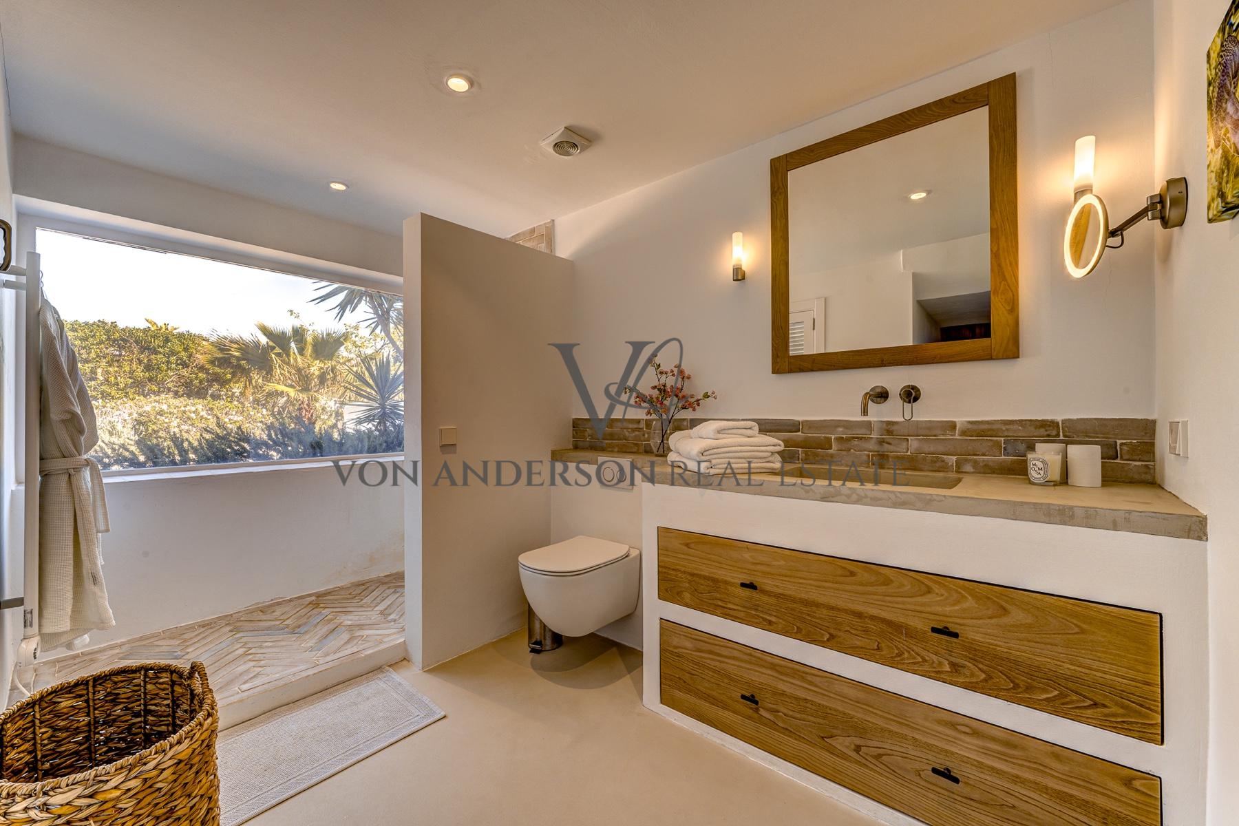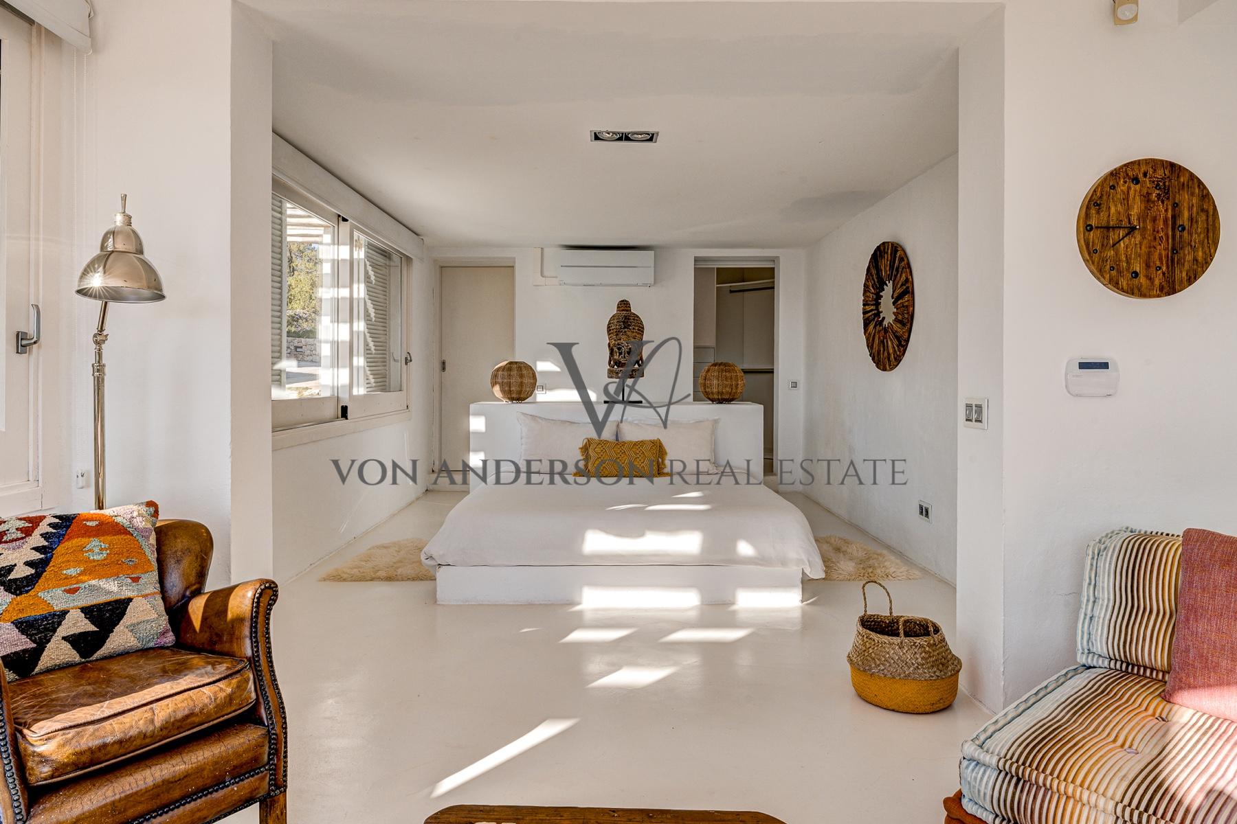 Diese wunderschön renovierte Villa, die nur einen kurzen Spaziergang von der ruhigen Bucht Cala Carbo entfernt liegt, verbindet authentischen ibizenkischen Charme mit modernem Luxus. Mit einem atemberaubenden Blick auf das Meer und unvergessliche Sonnenuntergänge für die Hälfte des Jahres, ist das Anwesen vor der ikonischen Kulisse von Es Vedra, die Schaffung einer unvergleichlichen Kulisse gesetzt.