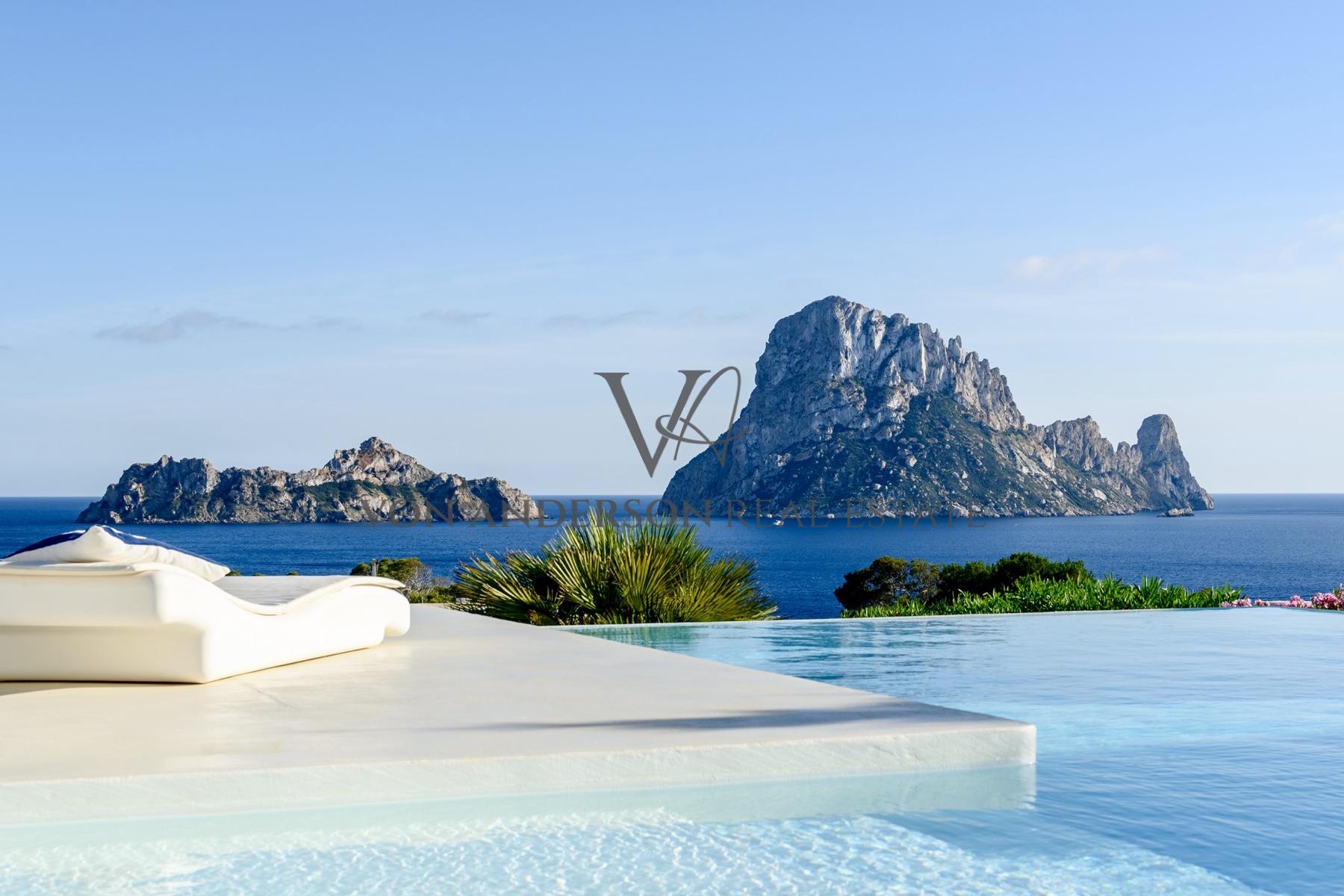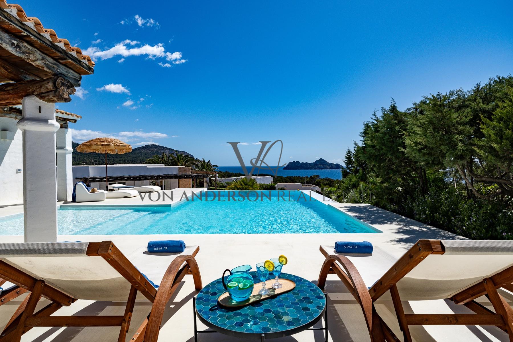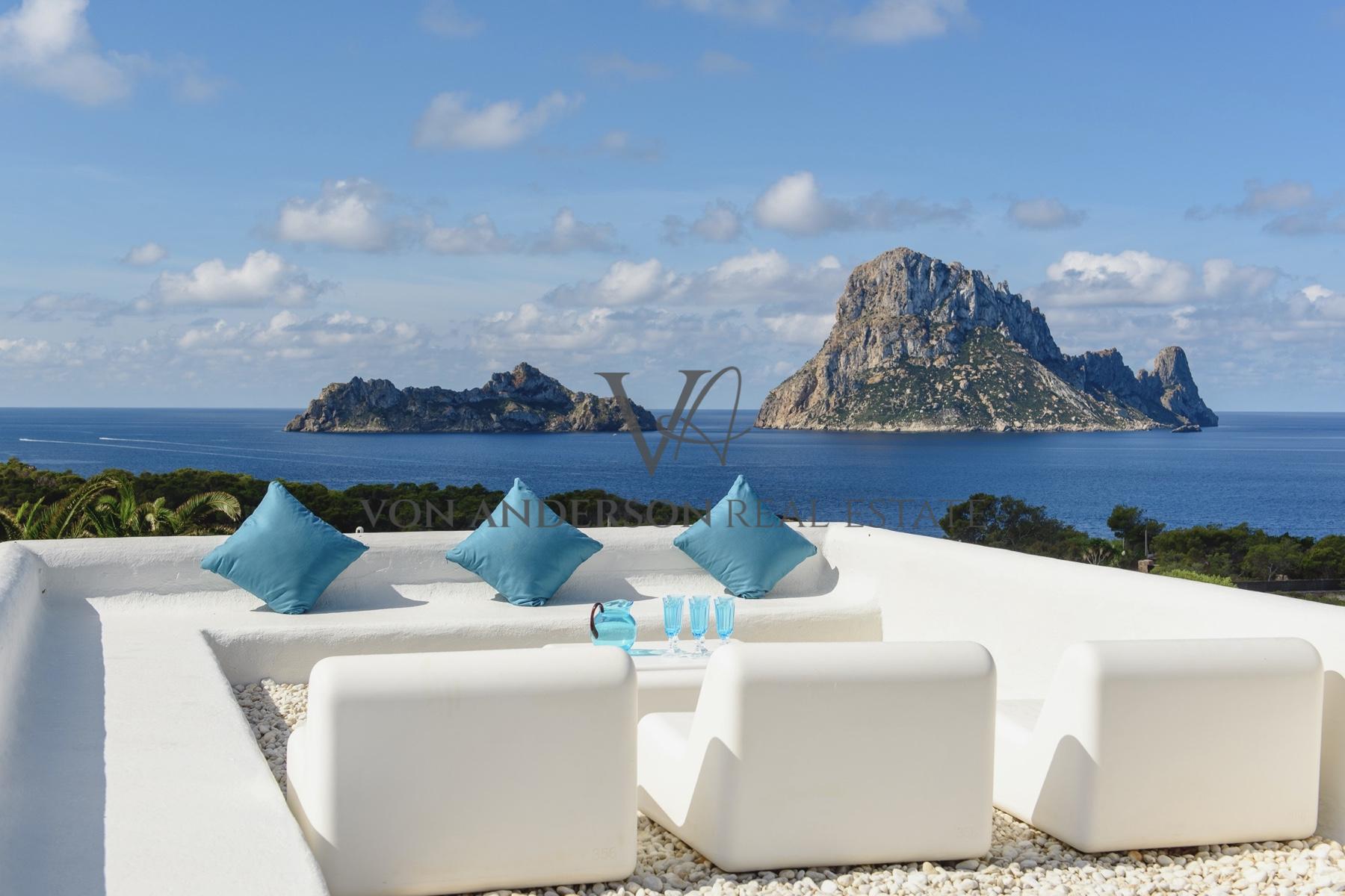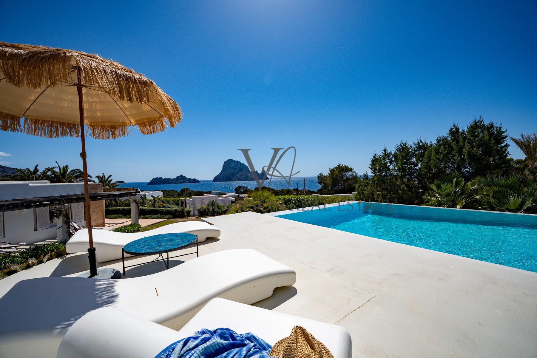 Eine atemberaubende, exklusive Villa in der begehrten Cala Carbo, südwestlich von Ibiza, bekannt als eine der schönsten Gegenden der Insel, um die faszinierende Aussicht auf Es Vedra und die atemberaubenden Sonnenuntergänge zu genießen.