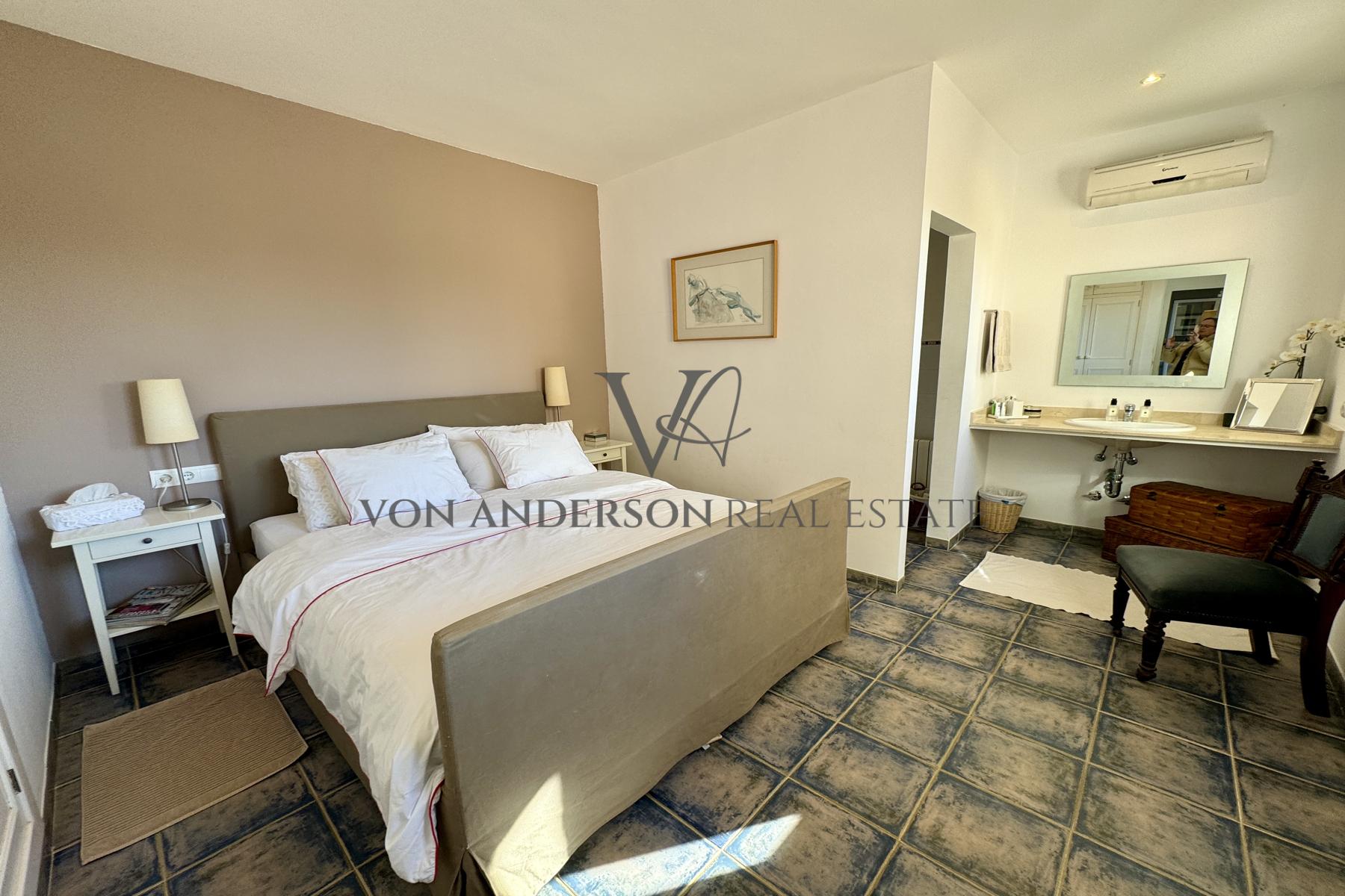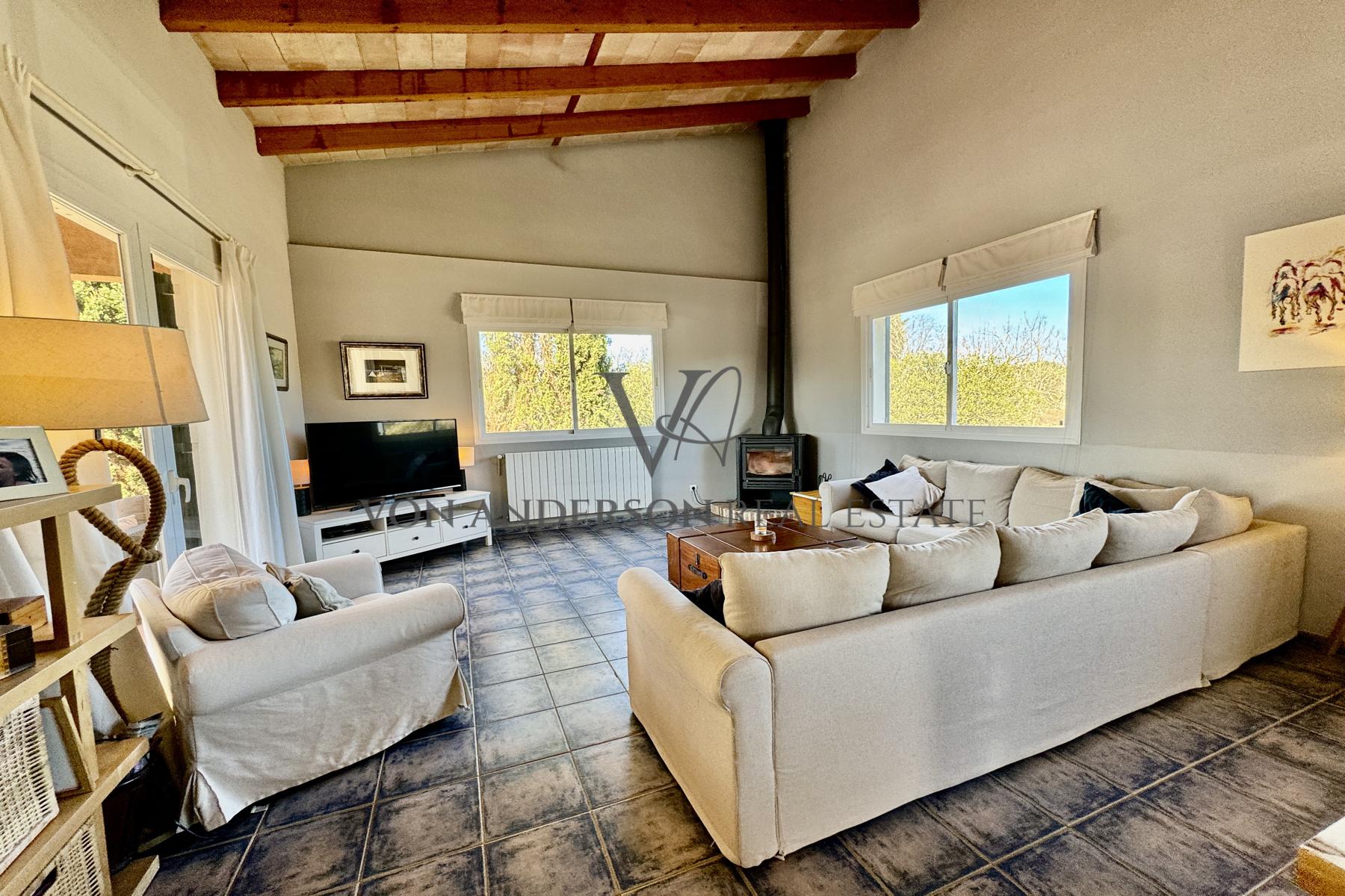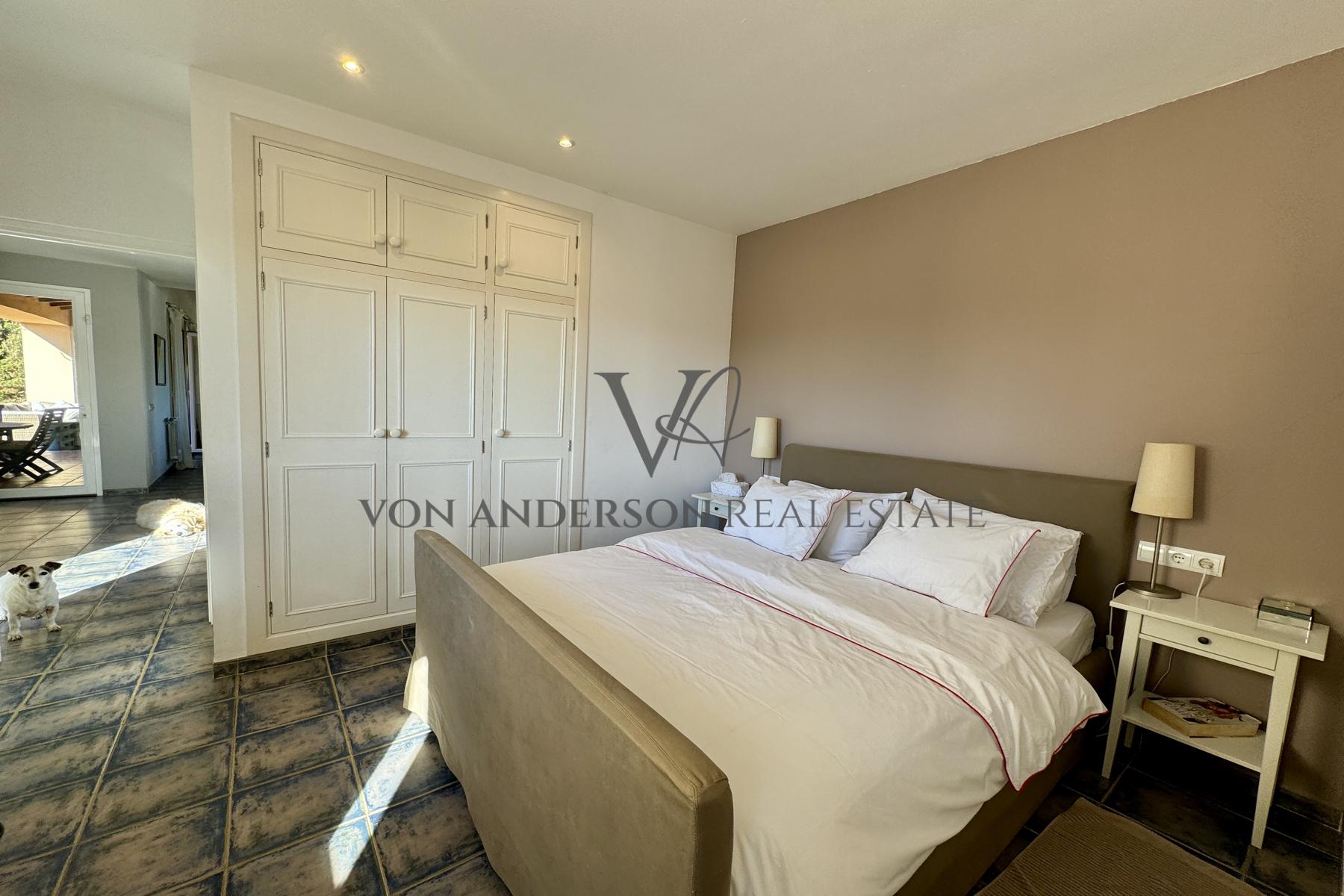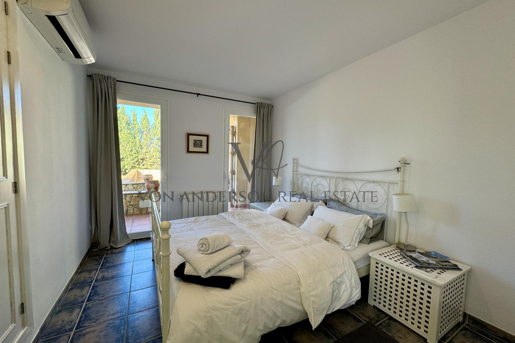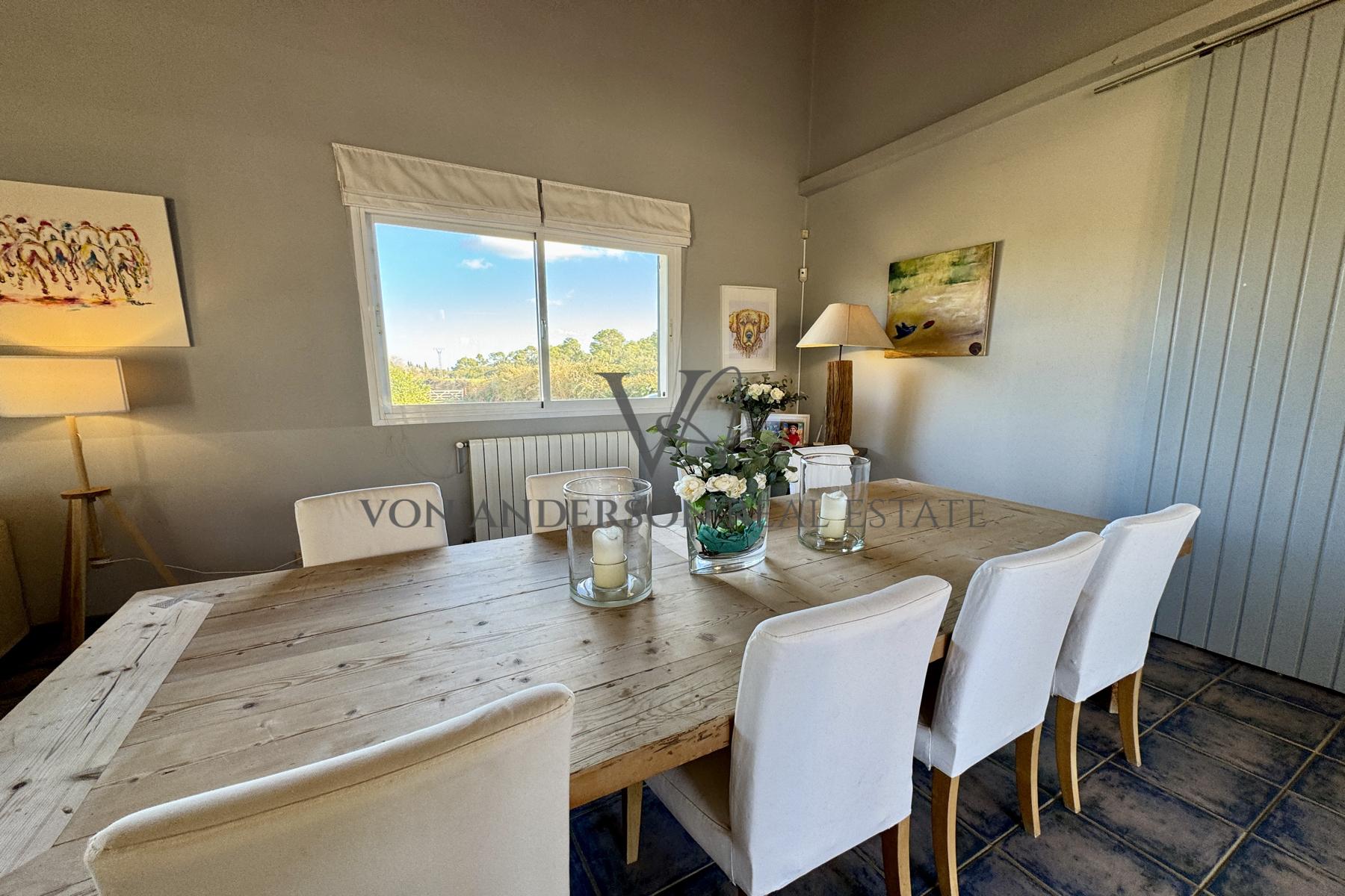 La espaciosa propiedad en forma de "L" mide 230m2 y ofrece un total de cuatro dormitorios y tres baños, dos de ellos en suite. La villa con calefacción central de gasoil también ofrece un amplio espacio de vida que incorpora una cocina independiente totalmente equipada, un elegante comedor y un salón con una acogedora chimenea de leña típica. Todas las habitaciones disponen de aire acondicionado.