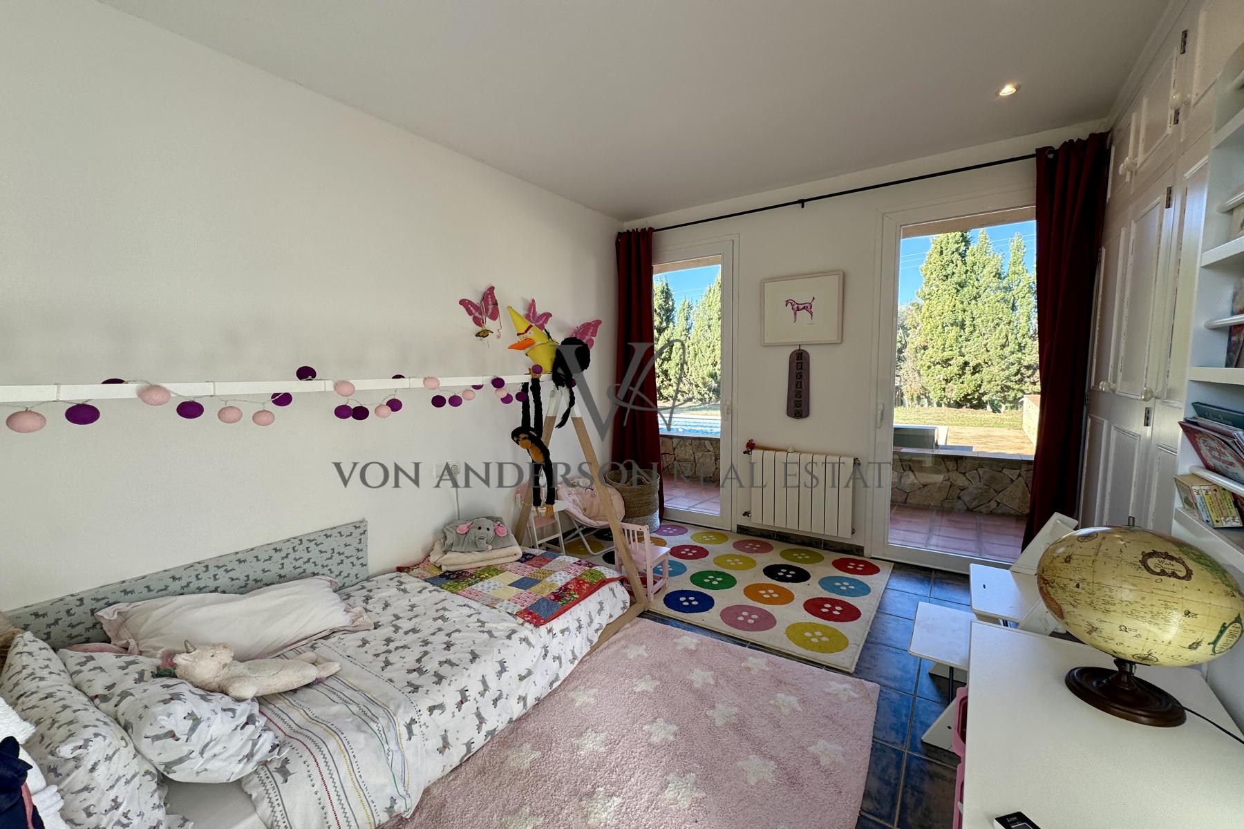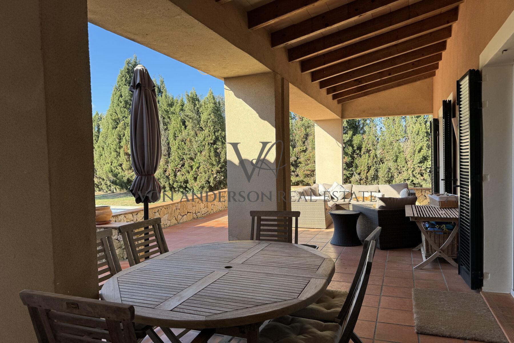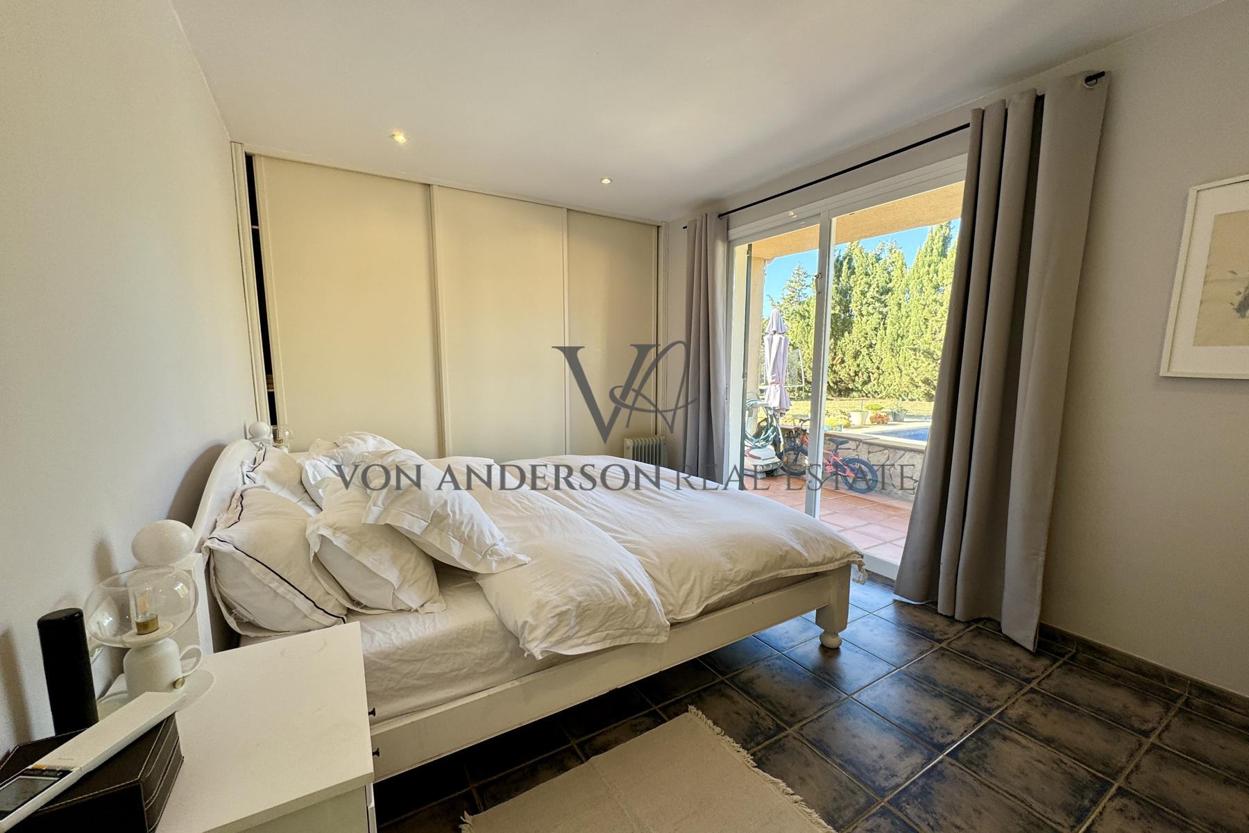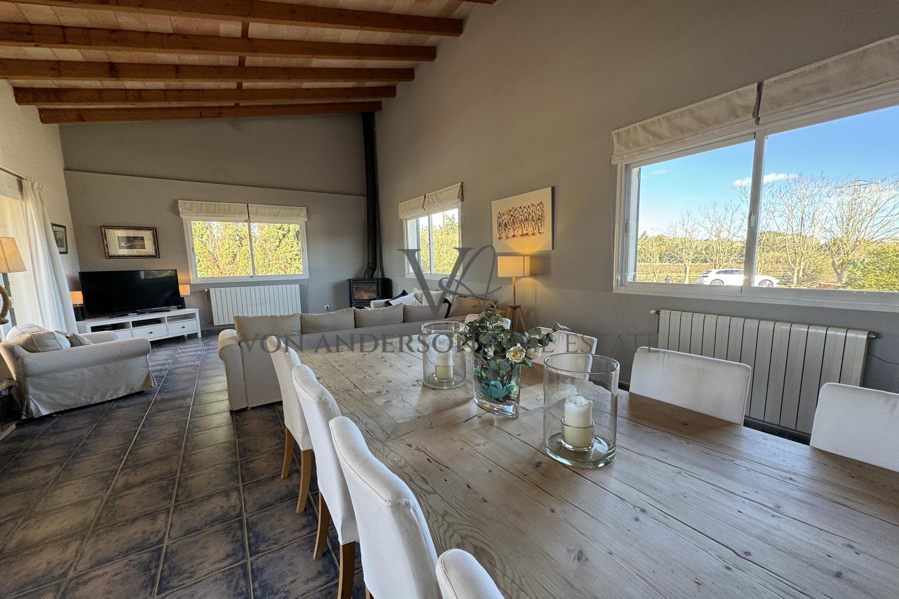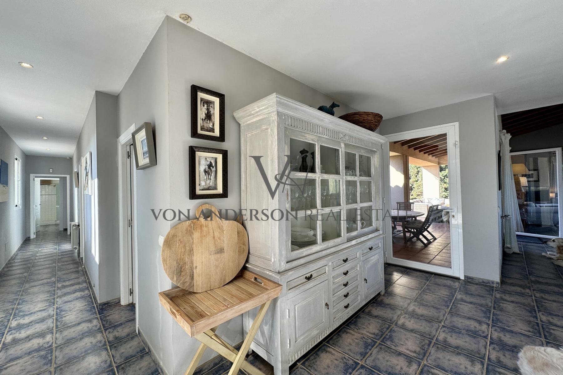 La espaciosa propiedad en forma de "L" mide 230m2 y ofrece un total de cuatro dormitorios y tres baños, dos de ellos en suite. La villa con calefacción central de gasoil también ofrece un amplio espacio de vida que incorpora una cocina independiente totalmente equipada, un elegante comedor y un salón con una acogedora chimenea de leña típica. Todas las habitaciones disponen de aire acondicionado.