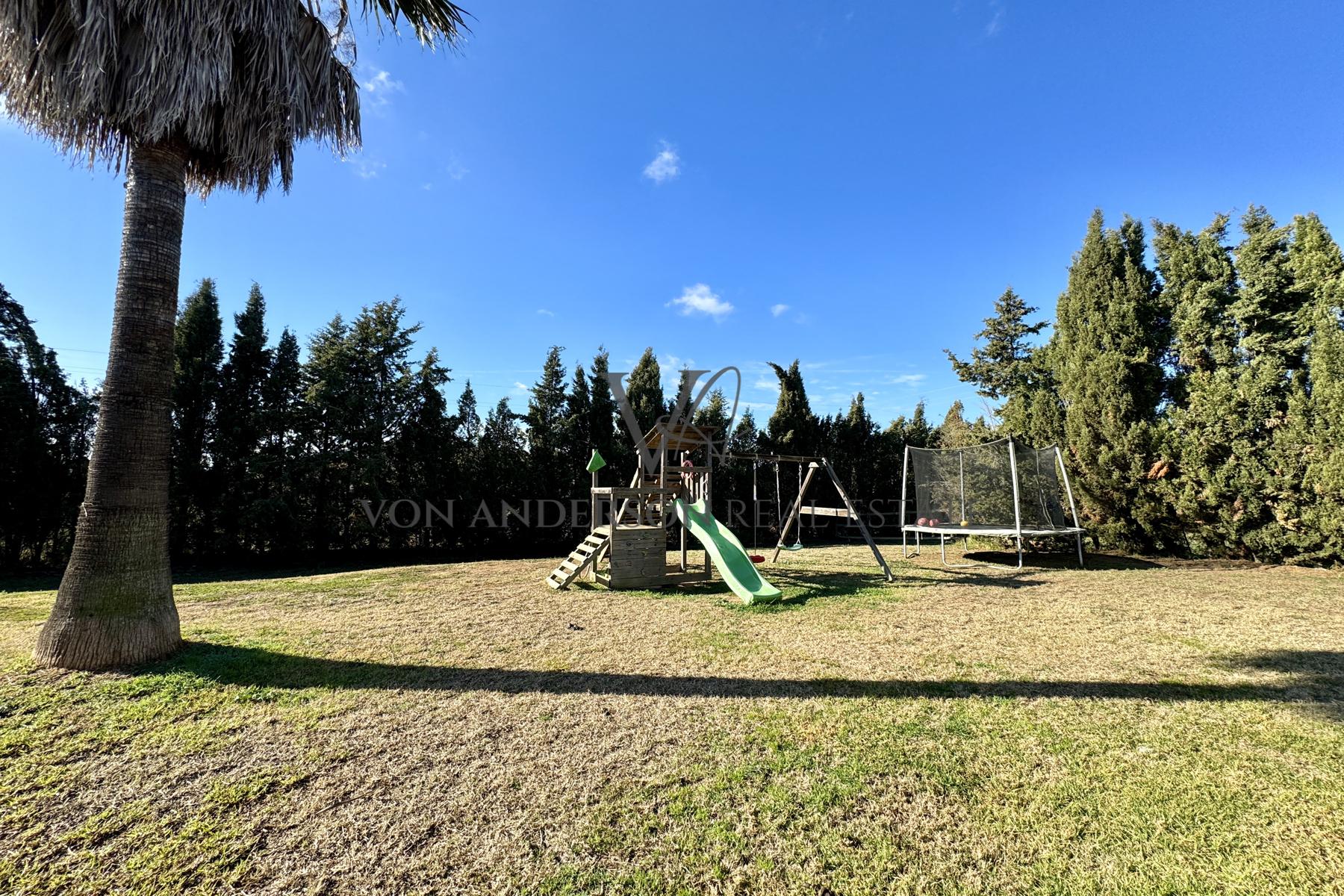Luminosa gracias a los ventanales que van del suelo al techo y a las paredes de color blanco puro, esta casa familiar de generosas proporciones da acceso desde casi todas las habitaciones a preciosas terrazas cubiertas para relajarse y disfrutar de comidas al aire libre. Aquí se pueden pasar largos días de sol y cálidas tardes isleñas con vistas a unos jardines magníficamente cuidados con césped que rodean una atractiva piscina de 38 m2 y una terraza solárium.