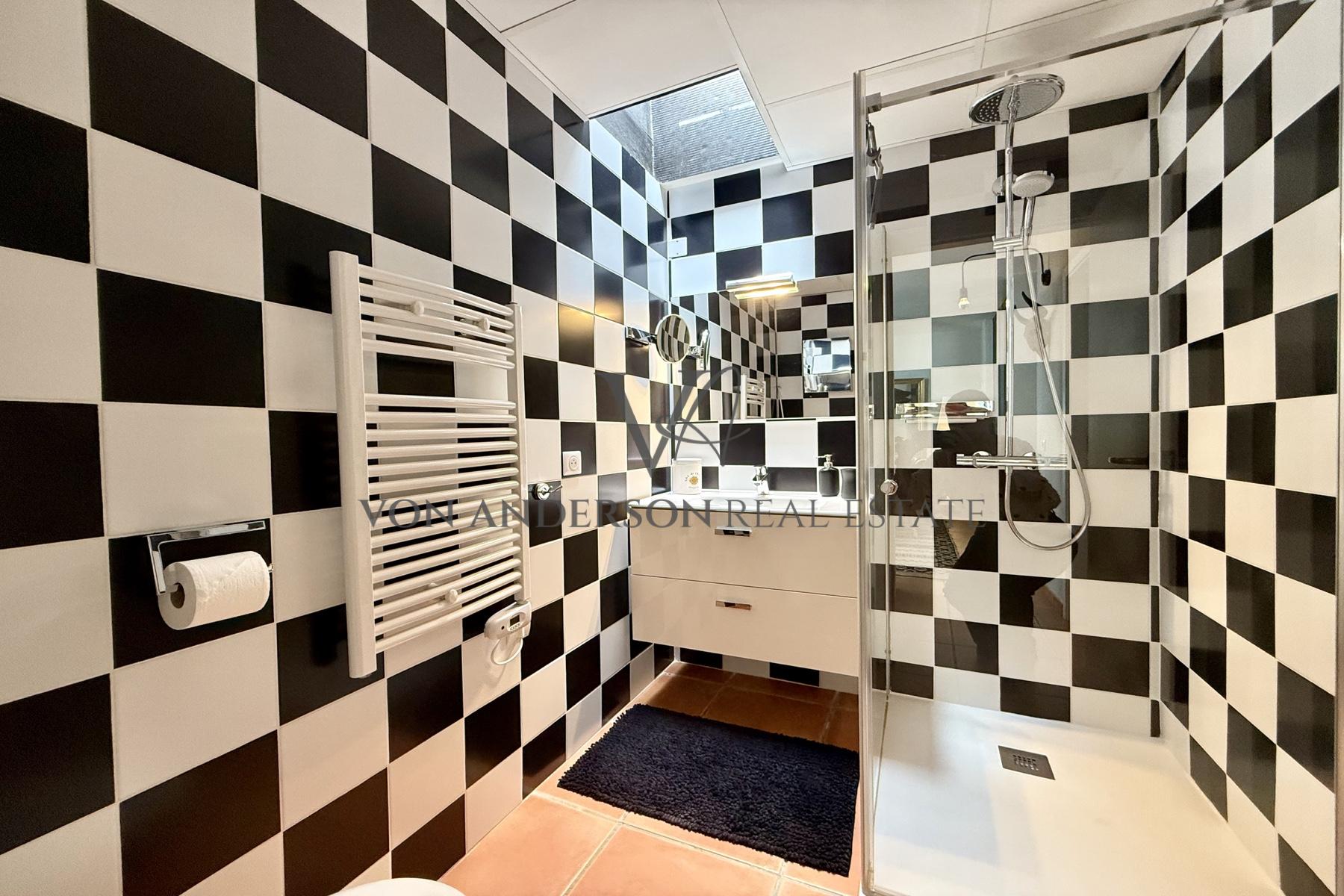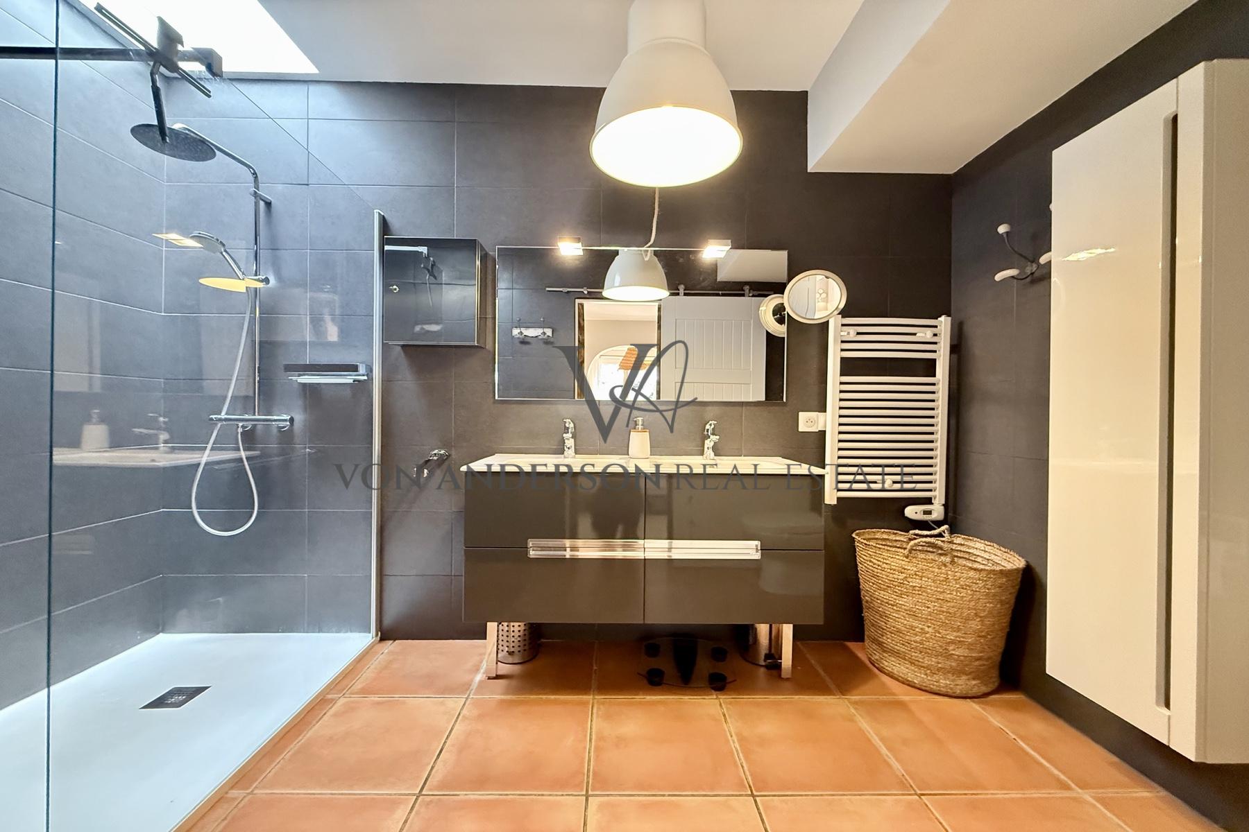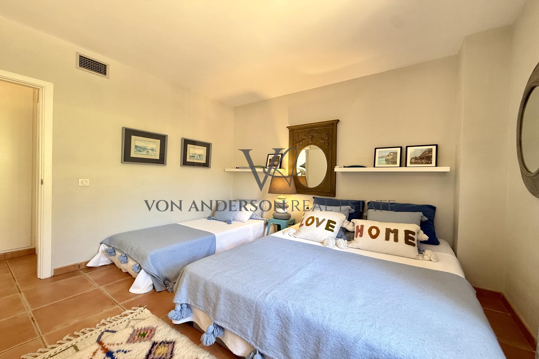 Hay dos amplios dormitorios, ambos con armarios empotrados y baños en-suite, además de suelos de terracota en todo añade calidez y carácter. Una habitación de invitados adicional con aire acondicionado ofrece un espacio flexible, ideal para visitas, una oficina en casa o un estudio.