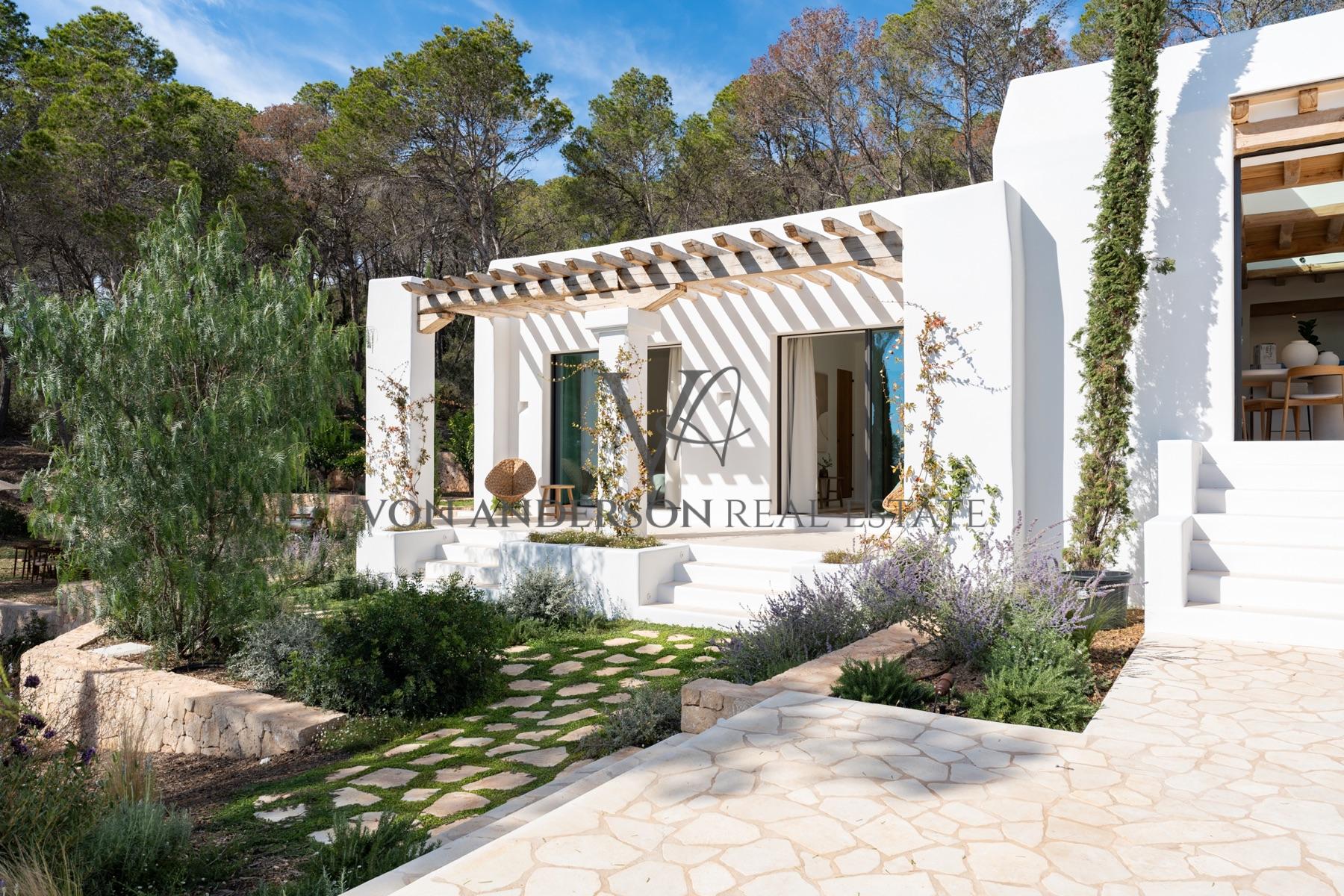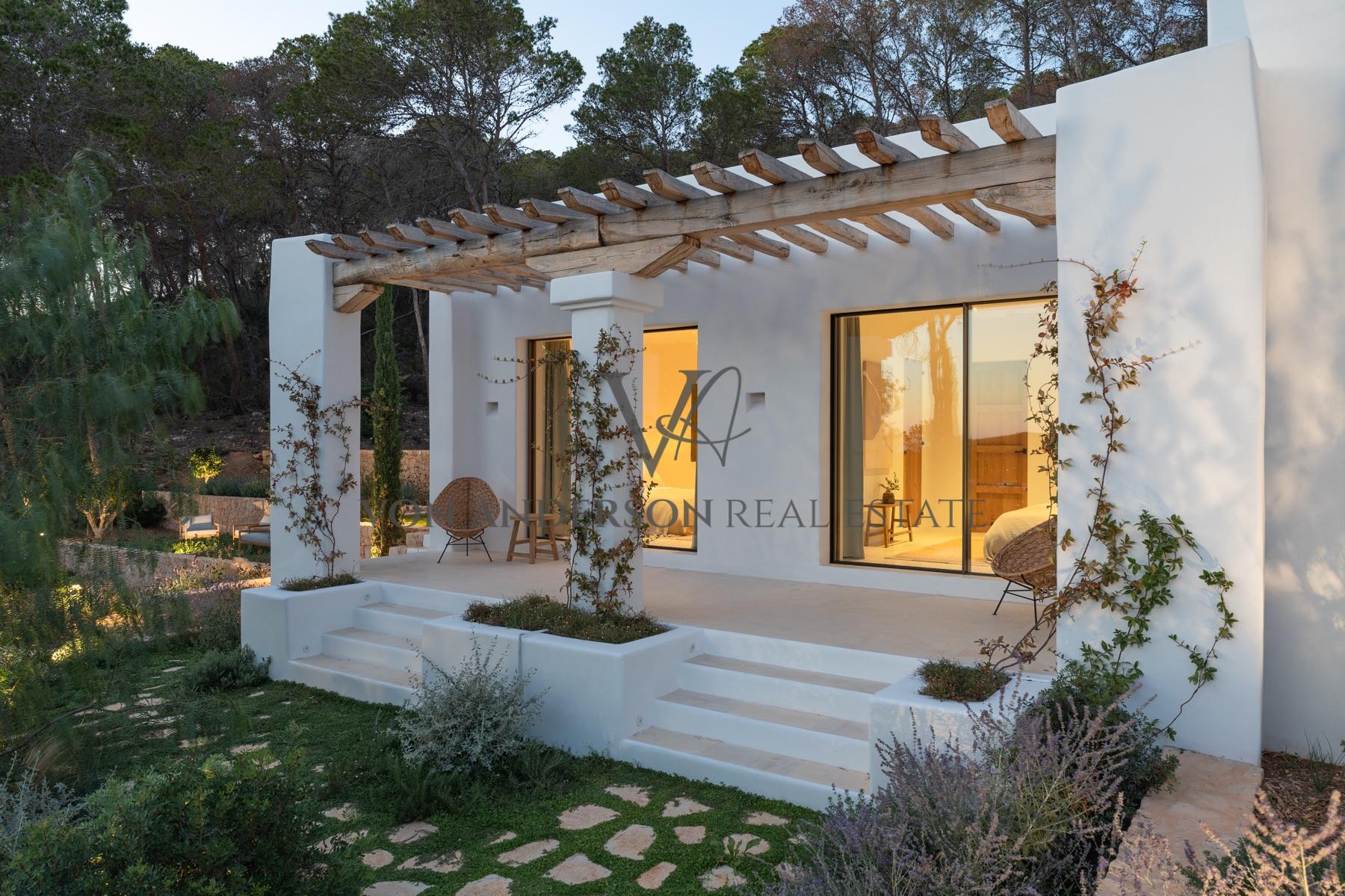 Située sur un vaste terrain privé de 23 000 m², cette exquise villa de 350 m² a été conçue de main de maître par le célèbre architecte d'Ibiza, Blakstad.