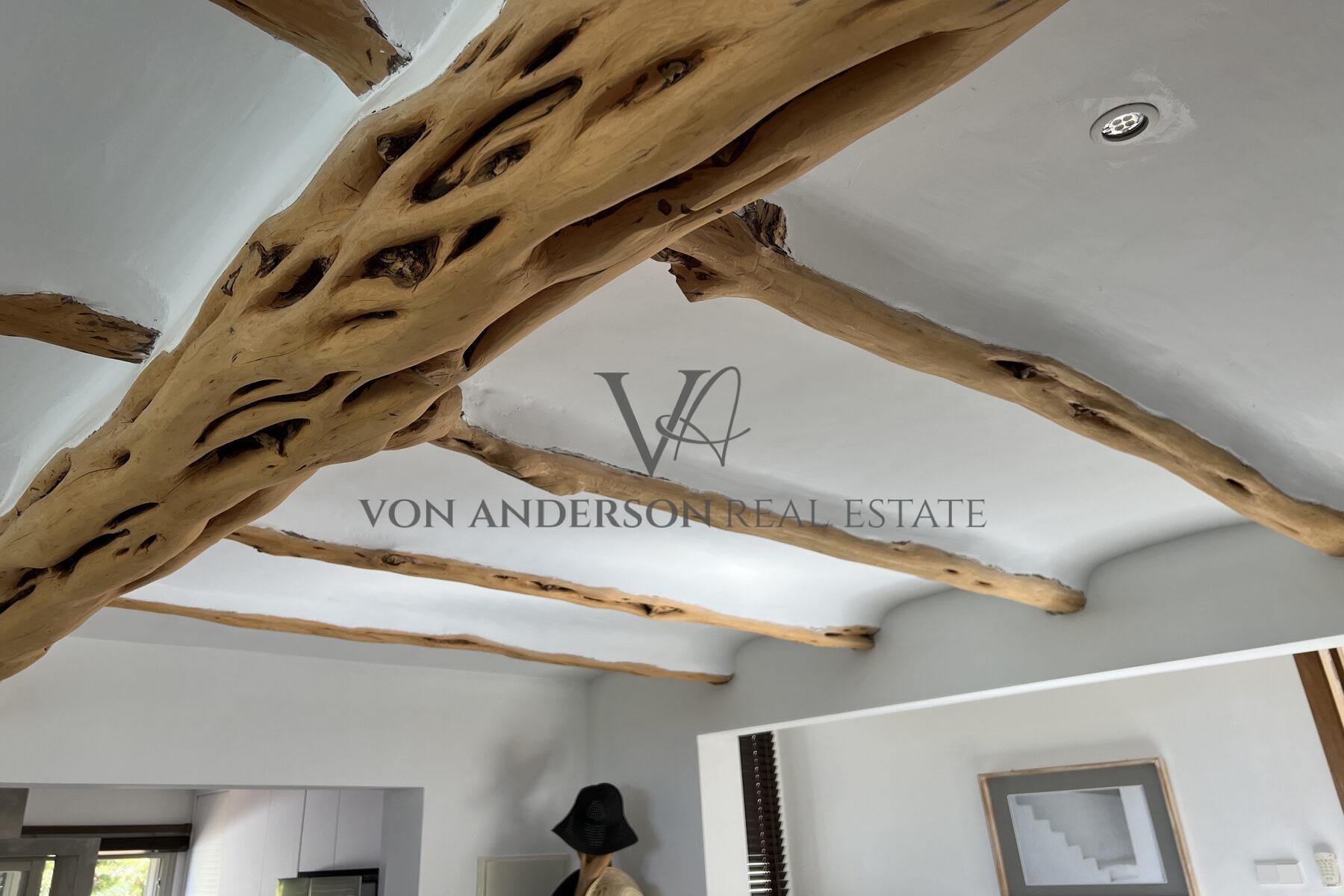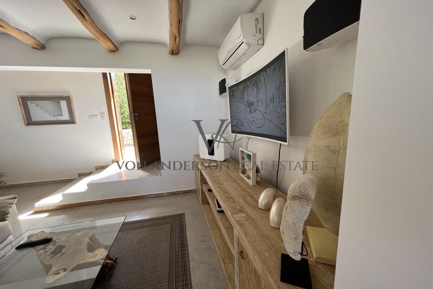 Cette maison familiale entièrement climatisée et chauffée, dotée de fenêtres à double vitrage, allie harmonieusement le confort d'un design contemporain aux éléments traditionnels de l'architecture insulaire, tels que les plafonds à poutres apparentes et l'utilisation de matériaux naturels. De grandes fenêtres inondent l'intérieur de lumière, mettant en valeur le magnifique paysage environnant. L'internet/WiFi par fibre optique à haut débit, un système d'alarme et un système audio Sonos complet à l'intérieur et à l'extérieur de la villa rehaussent l'expérience de vie moderne.