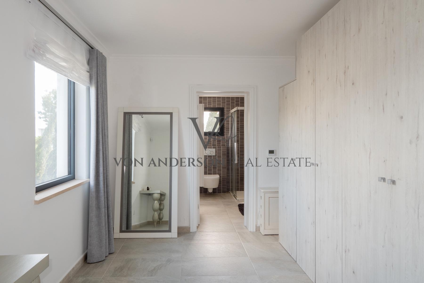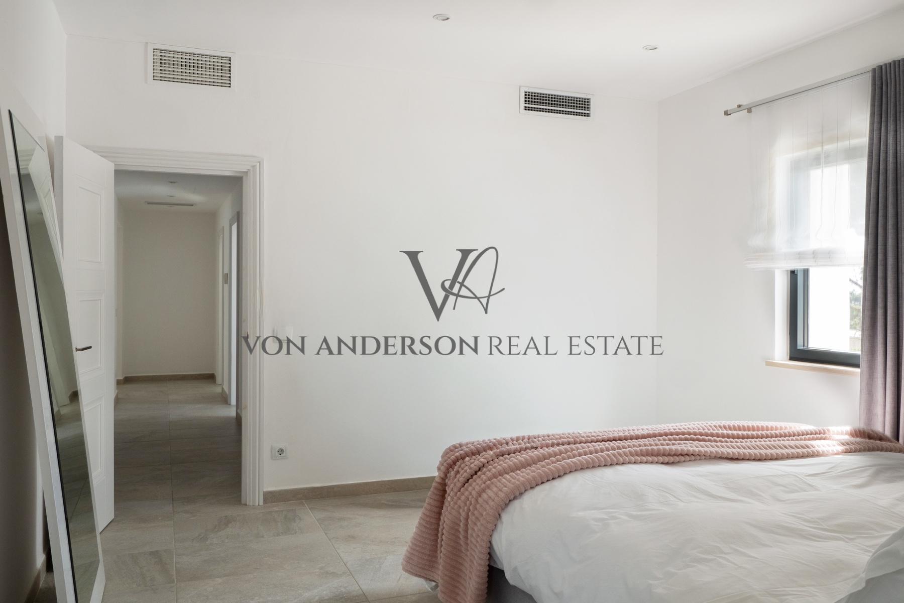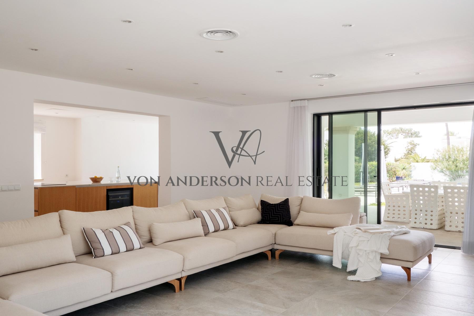 De leefruimtes strekken zich op natuurlijke wijze uit via openslaande deuren naar meerdere uitgestrekte terrassen, ideaal om buiten te dineren en bij zonsondergang te entertainen. Buiten flankeren aangelegde tuinen met elegante palmen en gemanicuurde gazons een uitnodigend zwembad met zonovergoten solariumterras dat een oase van rust vormt, perfect geschikt voor ontspanning of om gasten in stijl te ontvangen.