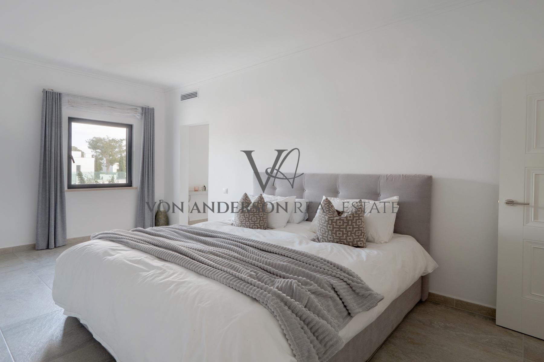 De twee verdiepingen tellende, volledig van airconditioning en vloerverwarming voorziene villa ontvouwt zich over royale, prachtig geproportioneerde interieurs, waar strakke minimalistische lijnen die alleen worden onderbroken door enorme ramen een naadloze verbinding creëren tussen het binnen- en buitenleven. Vier elegante slaapkamers bieden stijlvolle accommodatie en omvatten een luxe en ruime hoofdsuite compleet met kleedkamer.