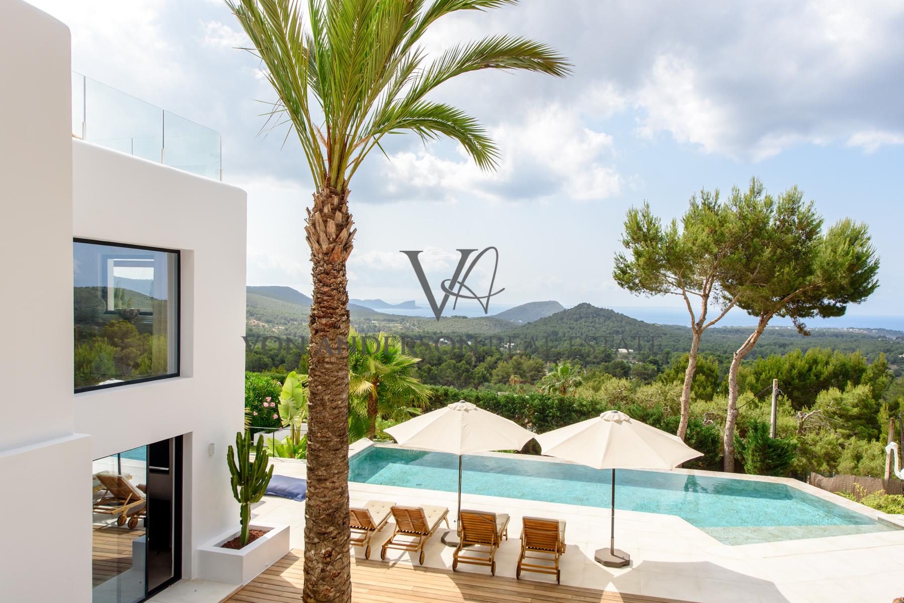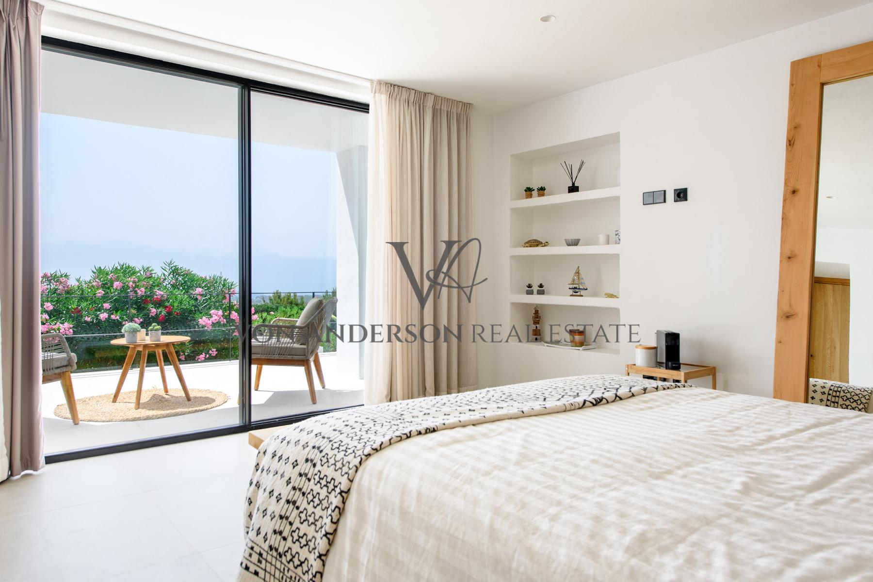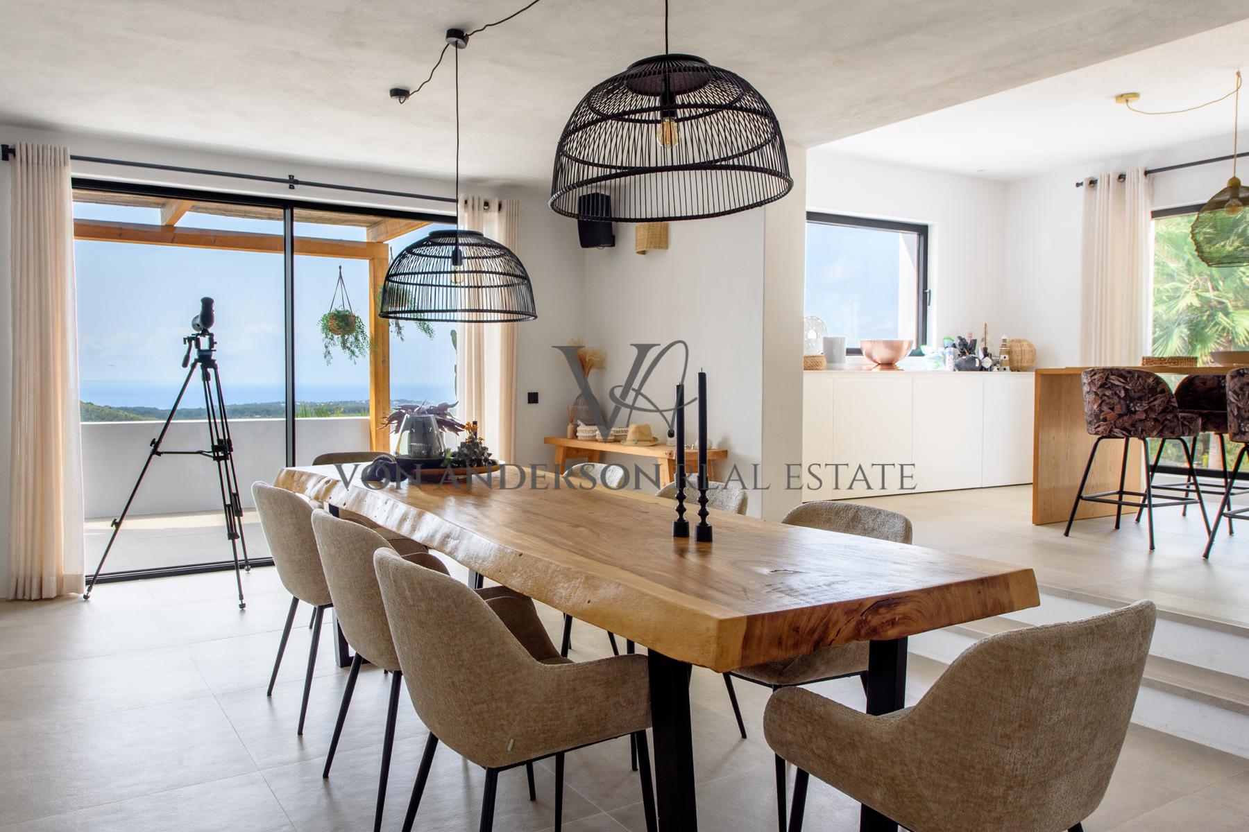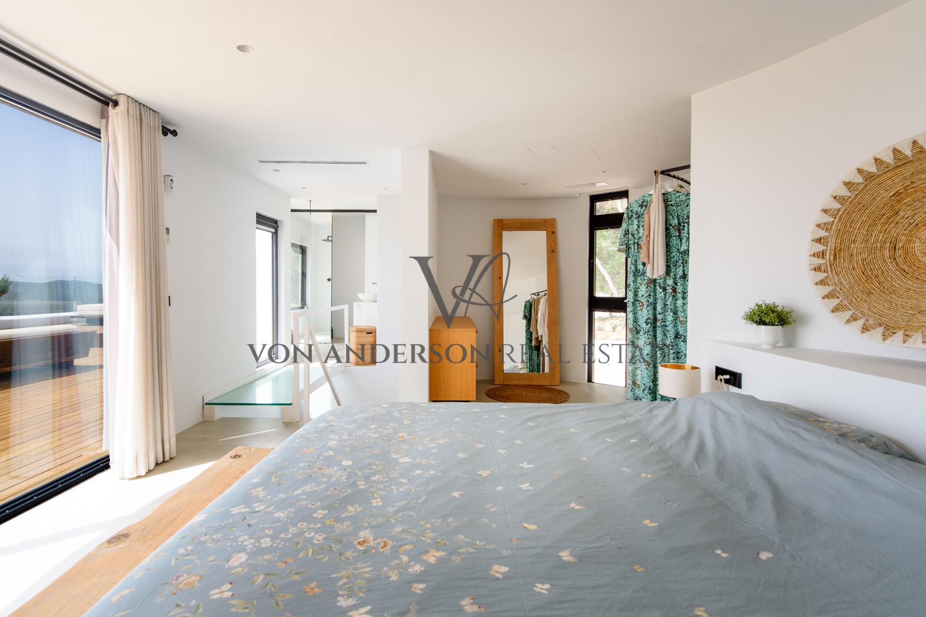 This contemporary villa is a breathtaking masterpiece, offering awe-inspiring vistas of the sea, mountains, and sunsets. Nestled in a serene locale near the charming whitewashed village of Es Cubells and overlooking the neighbouring island of Formentera, this villa boasts a spacious 400m2 footprint on a generous rural plot spanning 2,600m2.
