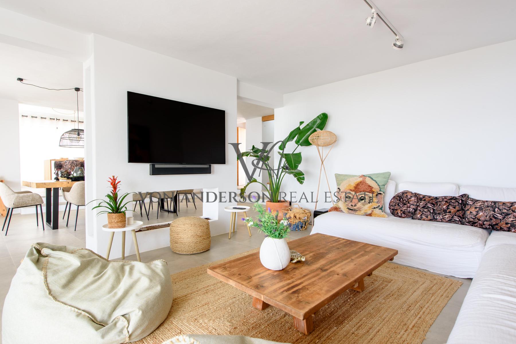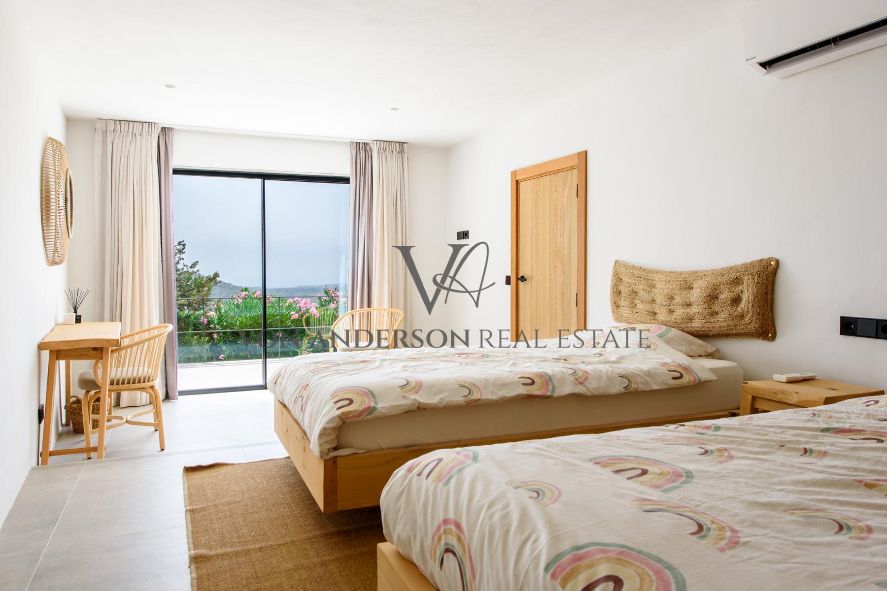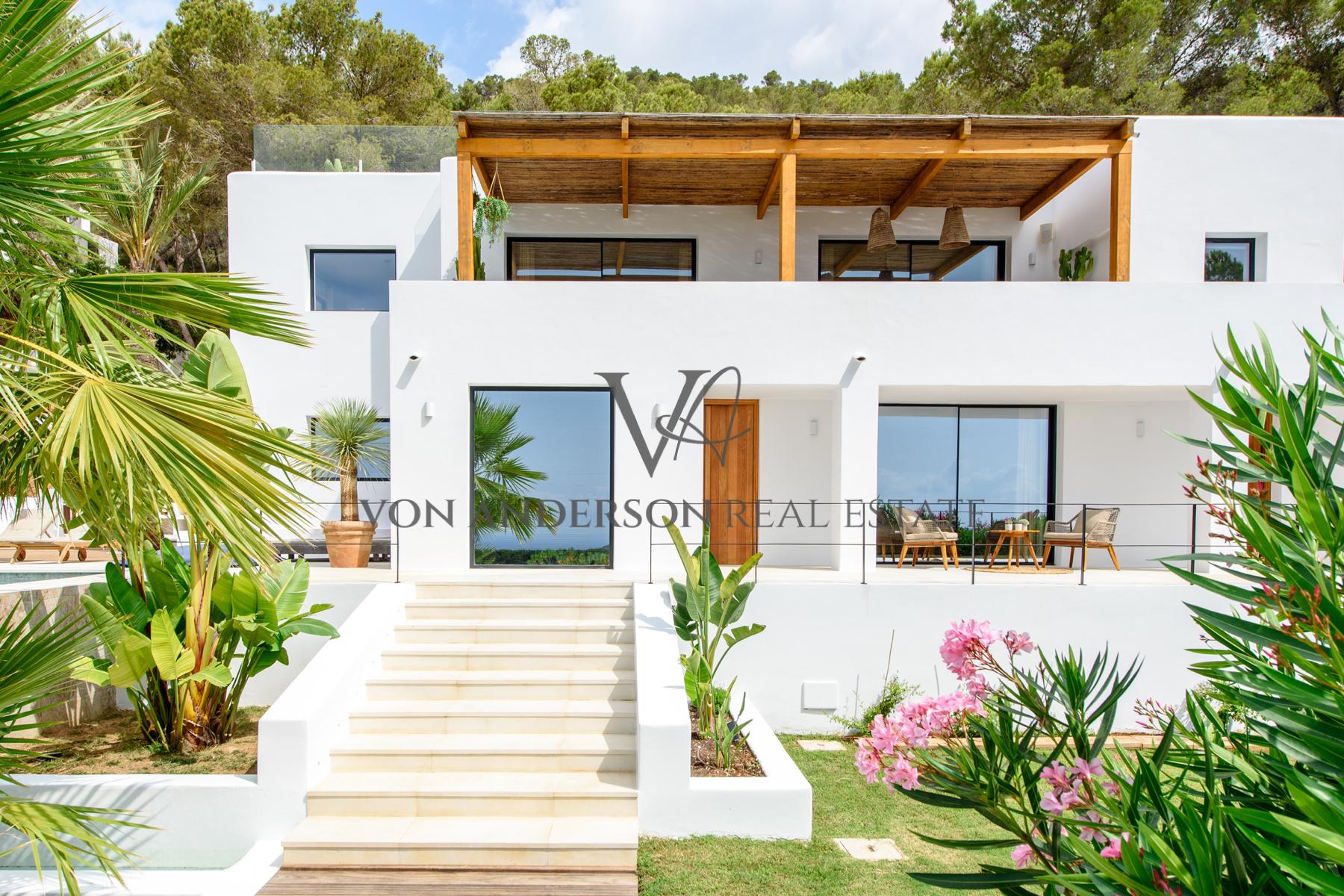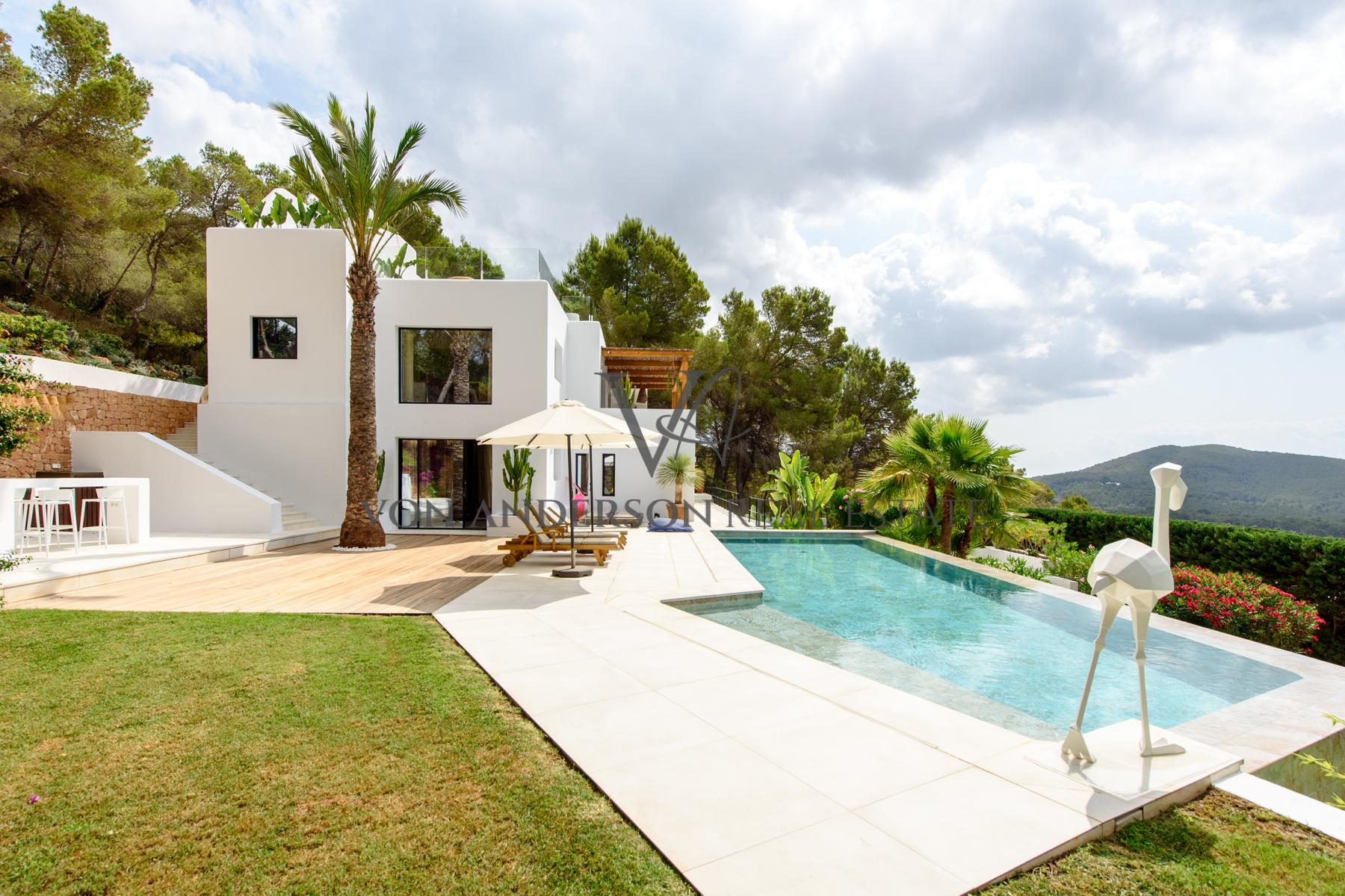 This contemporary villa is a breathtaking masterpiece, offering awe-inspiring vistas of the sea, mountains, and sunsets. Nestled in a serene locale near the charming whitewashed village of Es Cubells and overlooking the neighbouring island of Formentera, this villa boasts a spacious 400m2 footprint on a generous rural plot spanning 2,600m2.