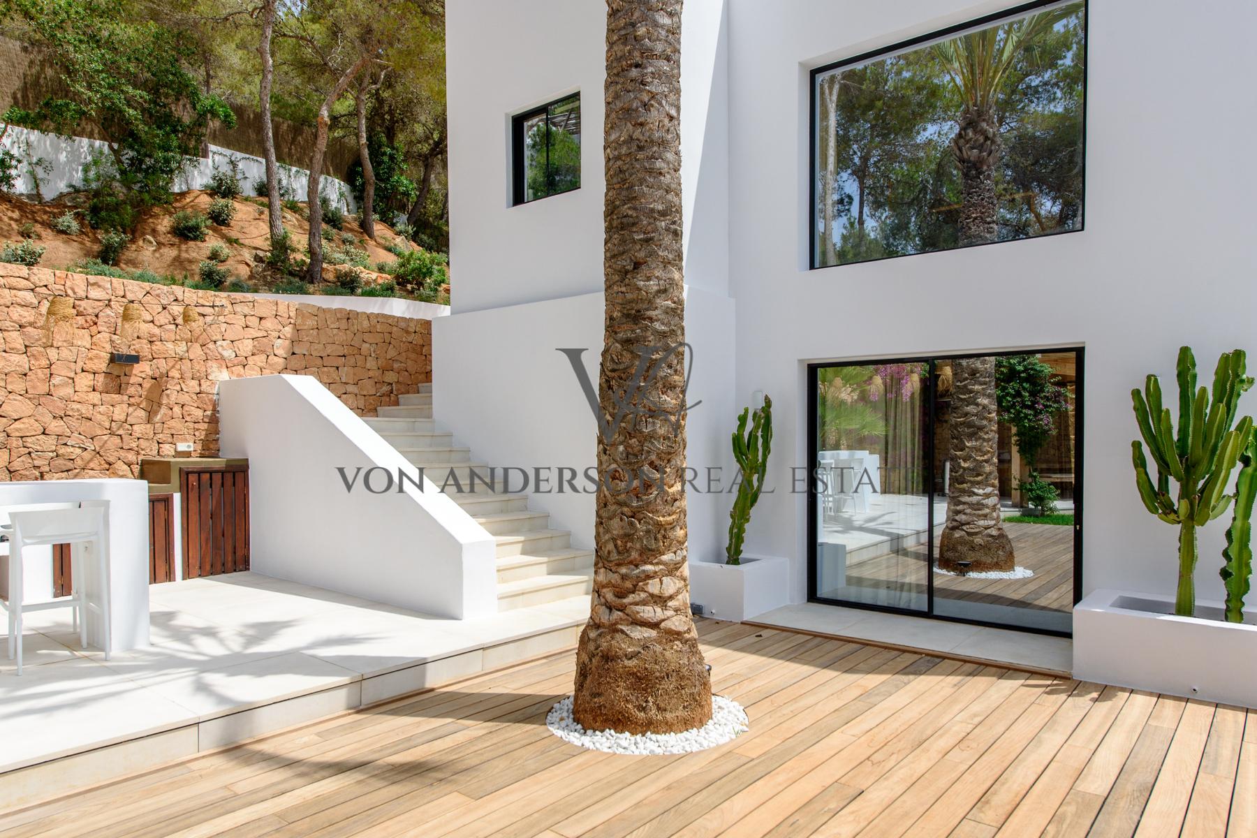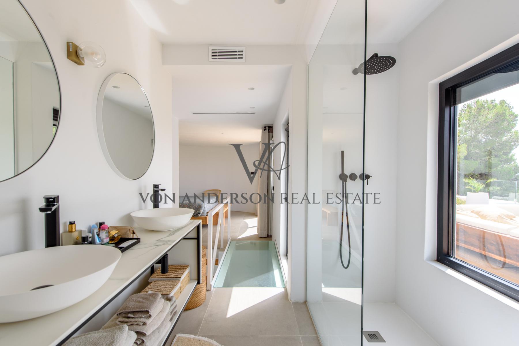 With multiple terraces on different levels, glass-fronted balconies, and a spacious roof terrace, residents have ample opportunities to unwind and relish elevated views of one of Ibiza’s most visually captivating and coveted regions. This property, located just a short three-minute drive from the beach and a mere fifteen minutes from Ibiza town, offers a truly opulent and secluded island getaway.