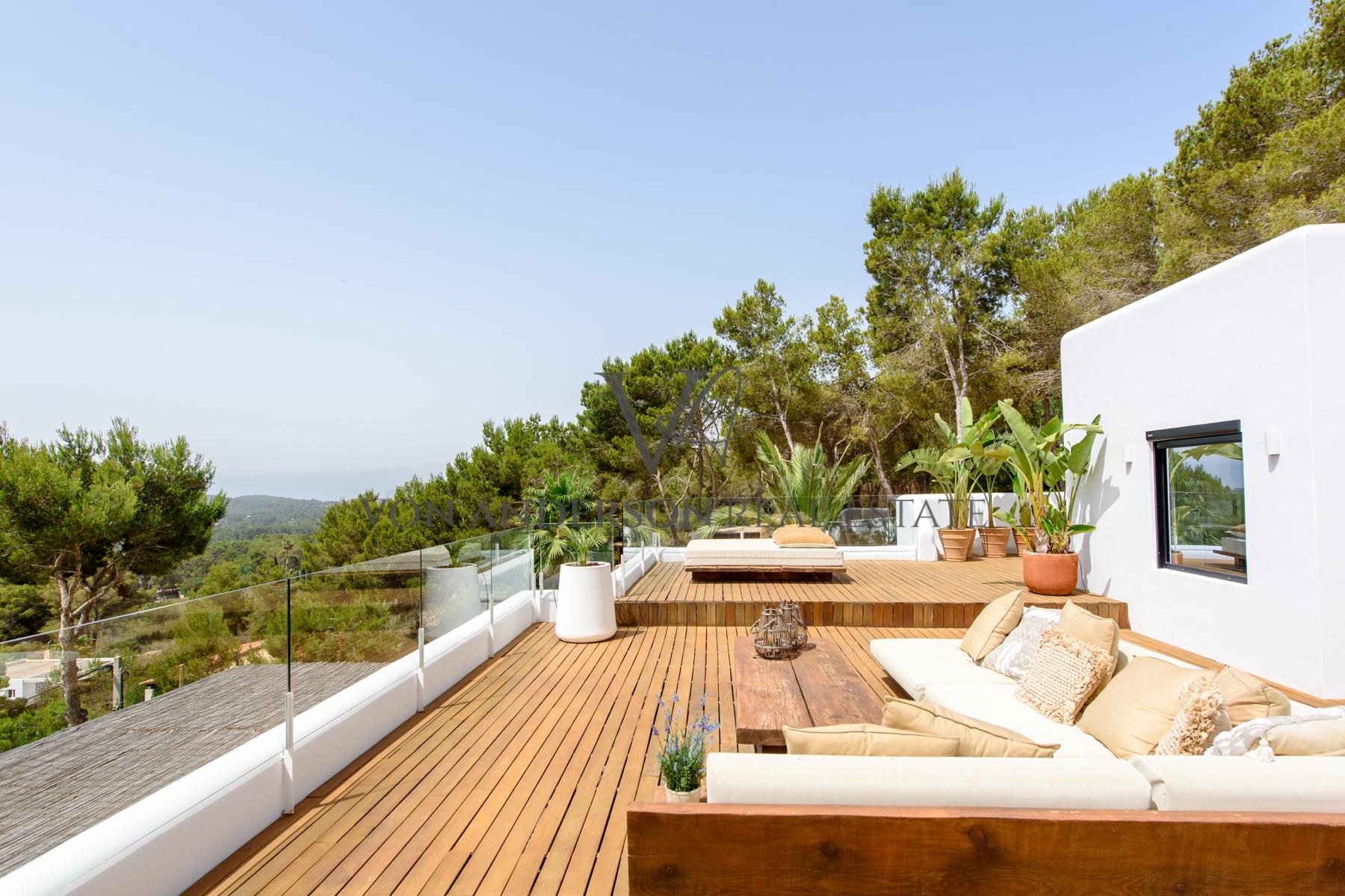 The villa, even though in peaceful Es Cubells, is nearby to local restaurants, a beautiful whitewashed church and small idyllic coves. The villa enjoys an excellent elevated location with stunning panoramic views.
