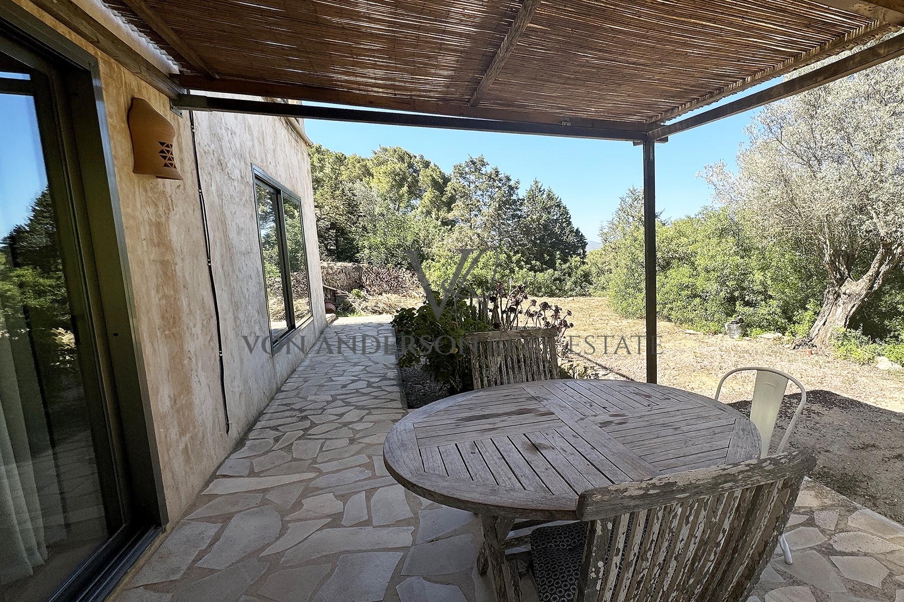 The principal residence, dating back 400 years, offers two bedrooms, each with its own bathroom. It includes a fitted farmhouse kitchen and two sitting rooms, one of which could easily be adapted into a third bedroom. The separate guest house provides a double bedroom with thick, local stone walls, a galley kitchen, and a lounge opening onto the pool area.