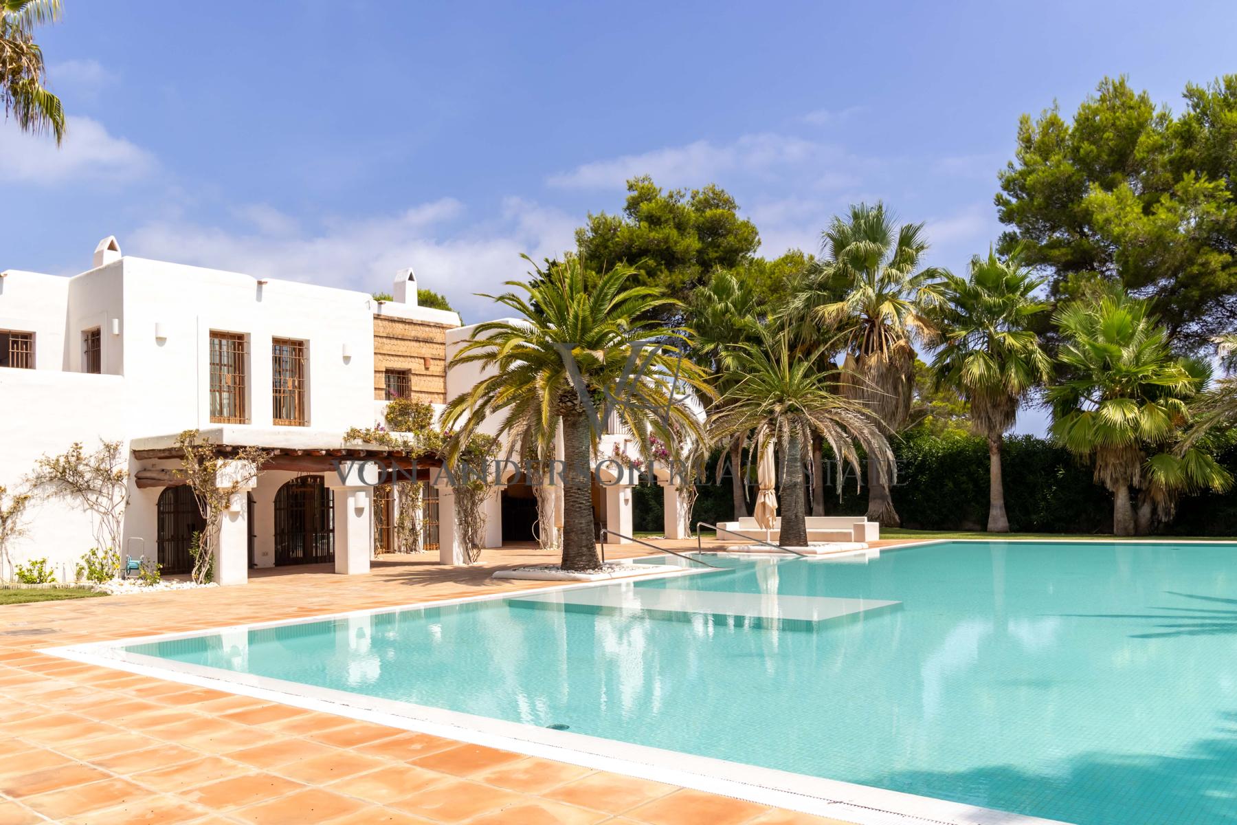 A highly impressive villa with a huge swimming pool, enjoying elevated partial sea views over the bay of Niu Blau, close to the picturesque beach resorts of S’Argamassa, Cala Pada, Cala Martina and Es Cana on Ibiza’s scenic East Coast.