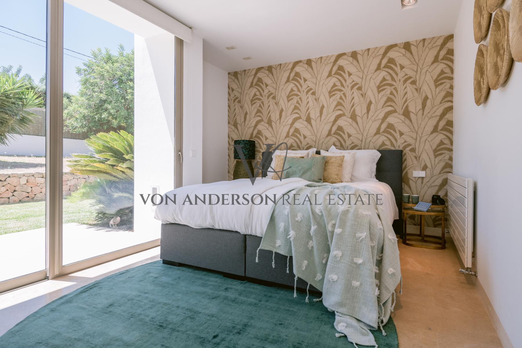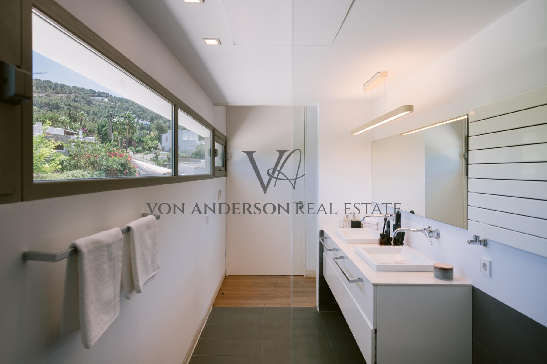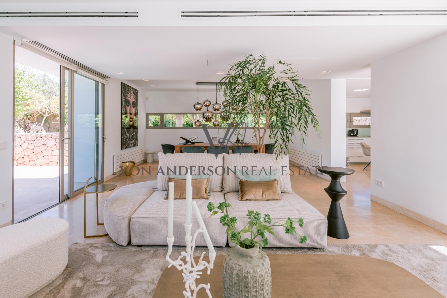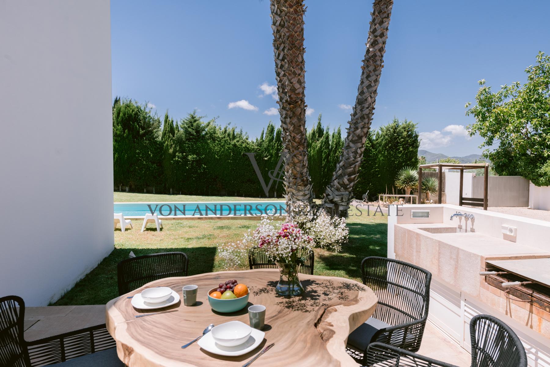 A breathtaking contemporary villa nestled within a large 2000m2 garden plot in the quaint village of Jesus, just a short drive from Ibiza town, the stunning Talamanca bay and the prestigious Botafoch yachting marina.