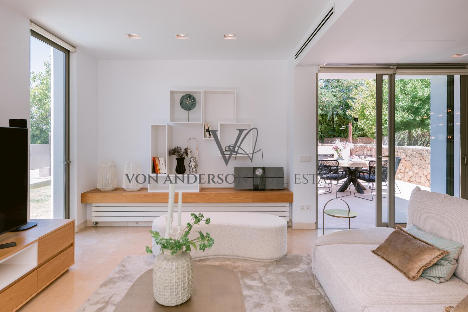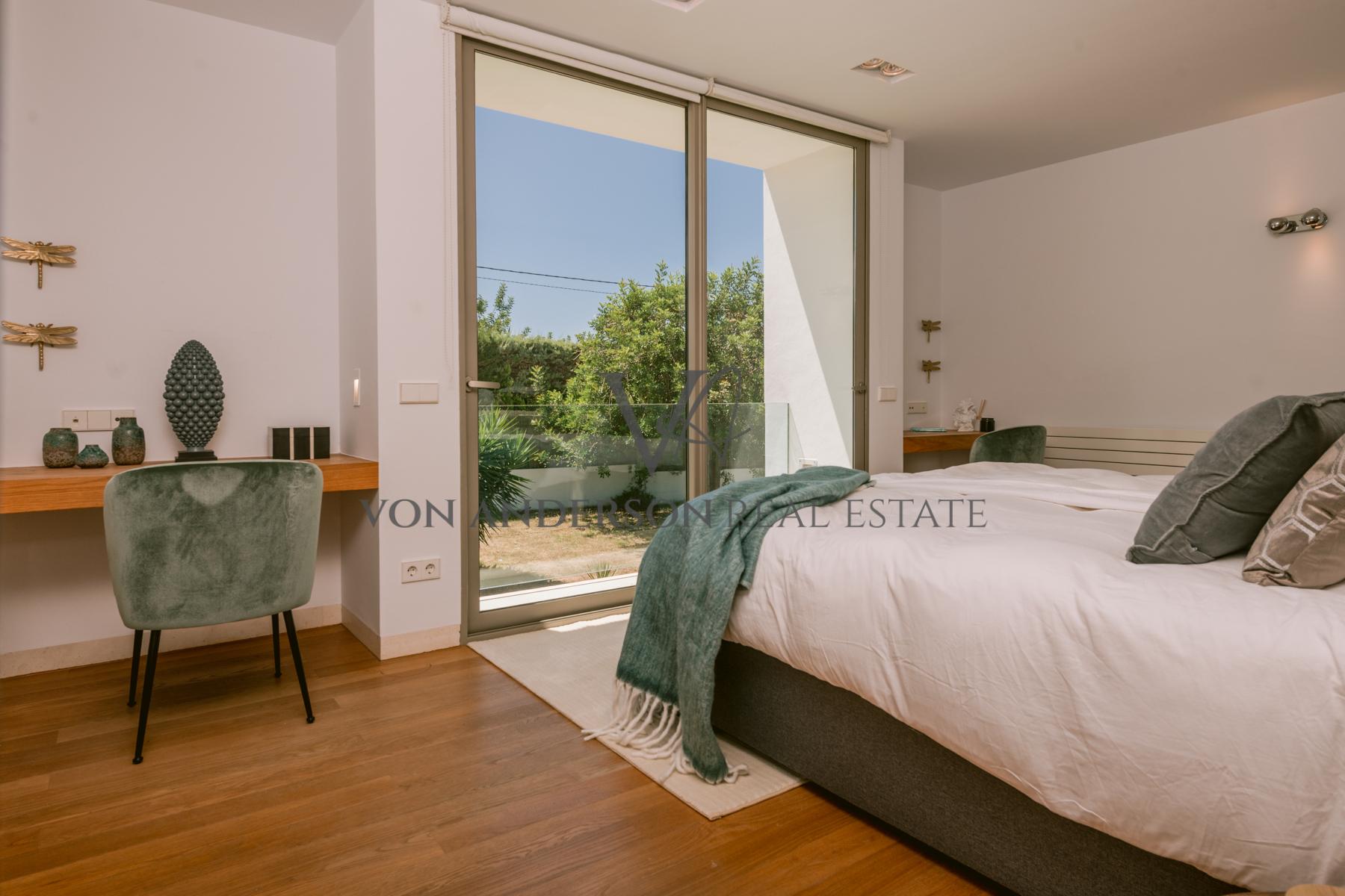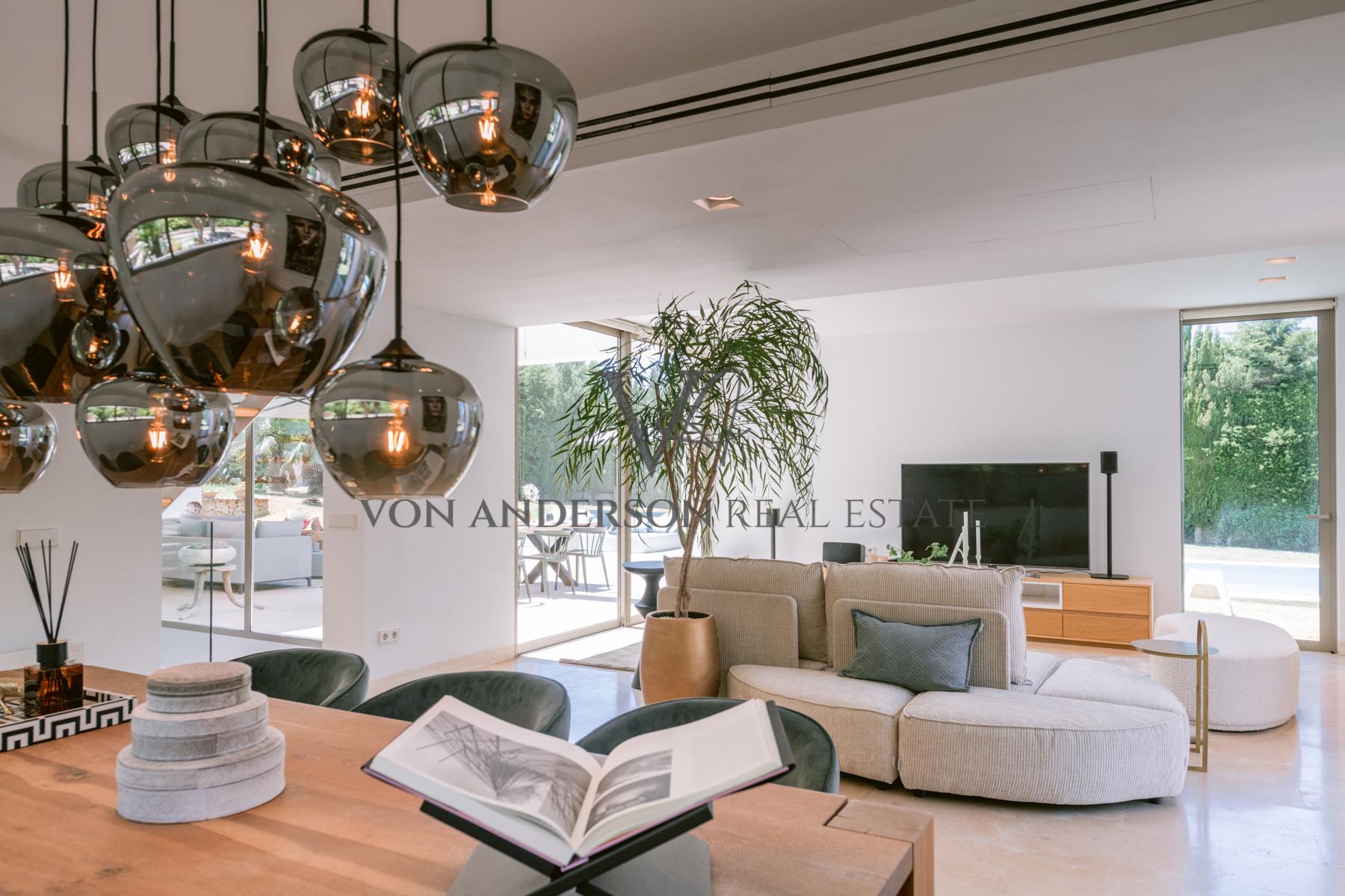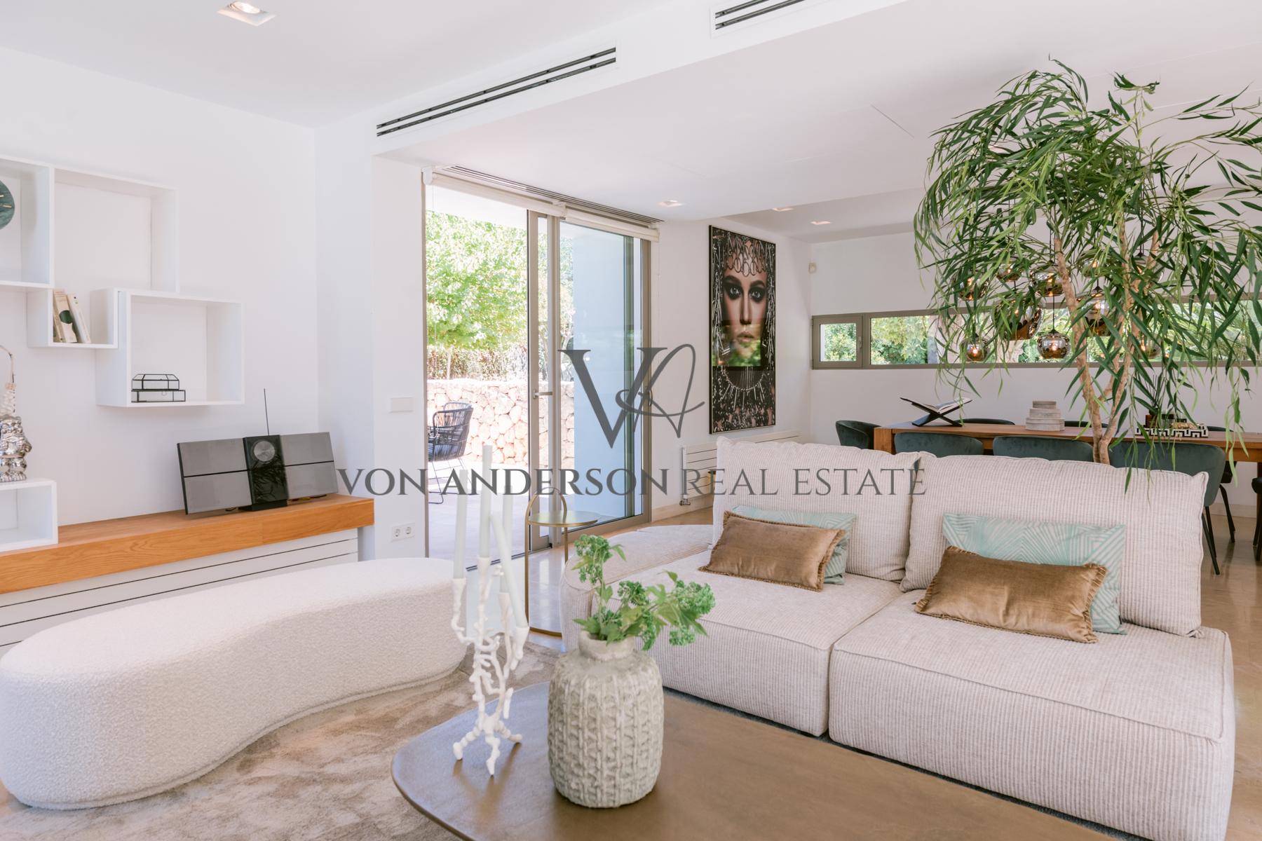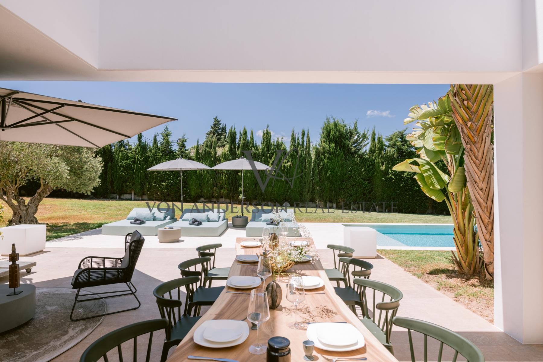 A breathtaking contemporary villa nestled within a large 2000m2 garden plot in the quaint village of Jesus, just a short drive from Ibiza town, the stunning Talamanca bay and the prestigious Botafoch yachting marina.