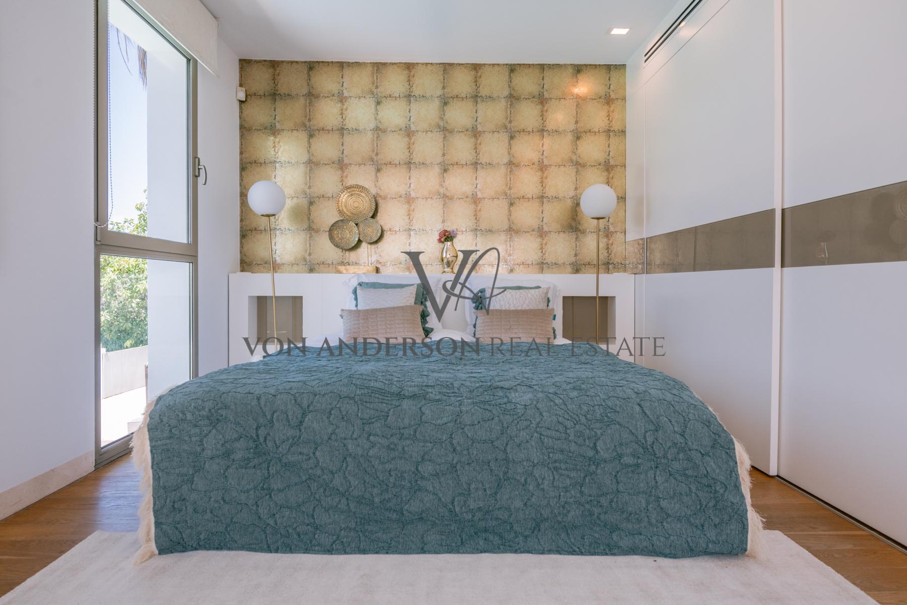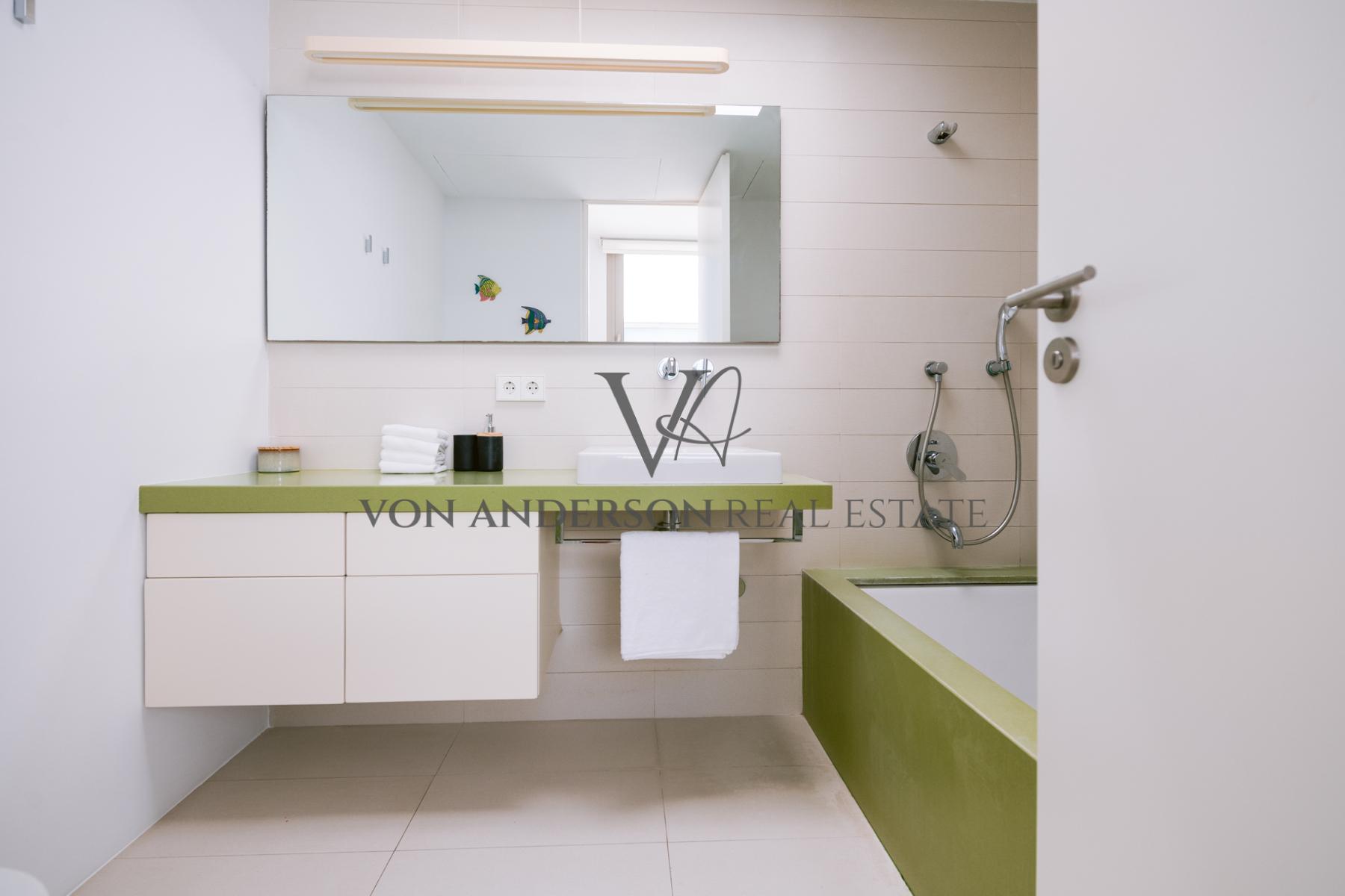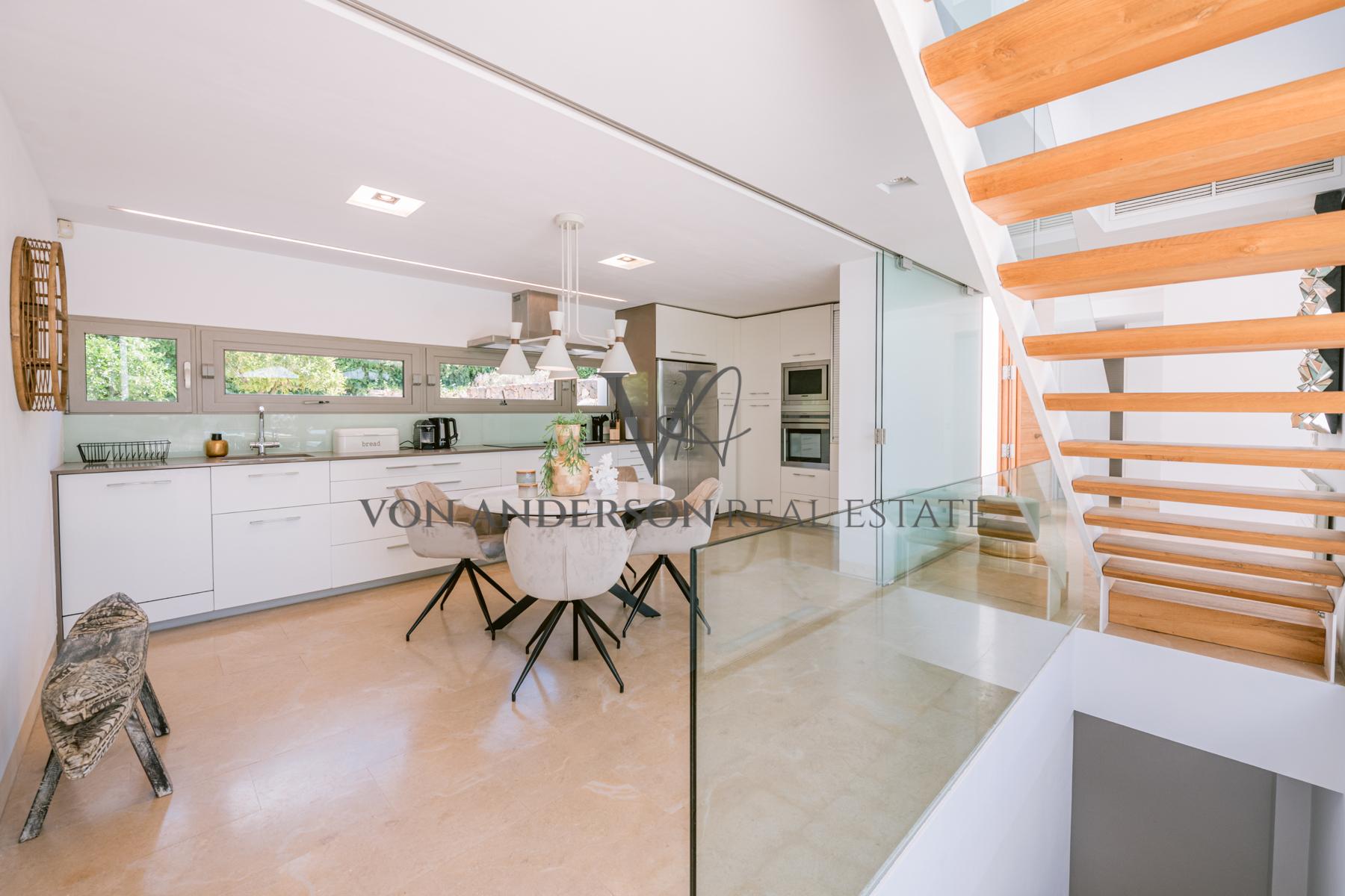 This exceptional property features four suites, each with its own private bathroom, including a lavish master suite with an outdoor gym and a penthouse boasting its own balcony. Spanning 320m2 across three floors, the villa offers a spacious open-plan living area and a custom-fitted kitchen equipped with top-of-the-line energy-efficient appliances.