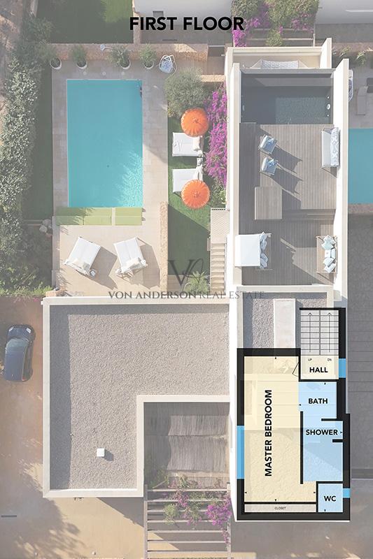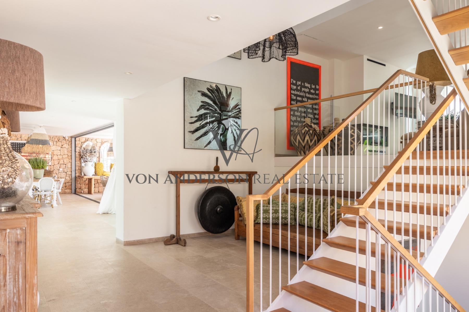 Just a 10-minute walk from the sands of Cala Conta and Cala Escondida, and moments from acclaimed dining including Sunset Ashram, the location balances privacy with connectivity. Nearby, Cala Bassa Beach Club and the luxury 7Pines Resort offer world-class leisure, fitness, and spa experiences.