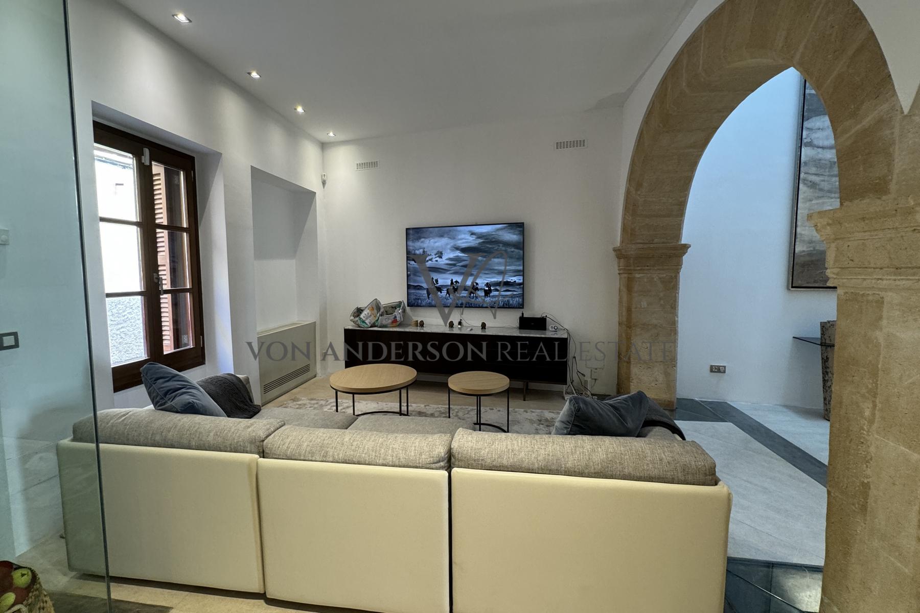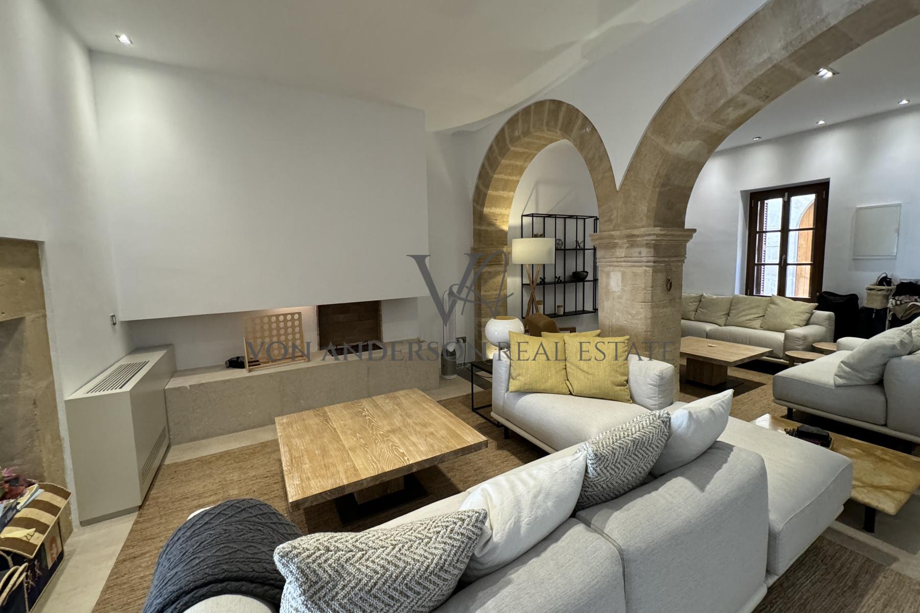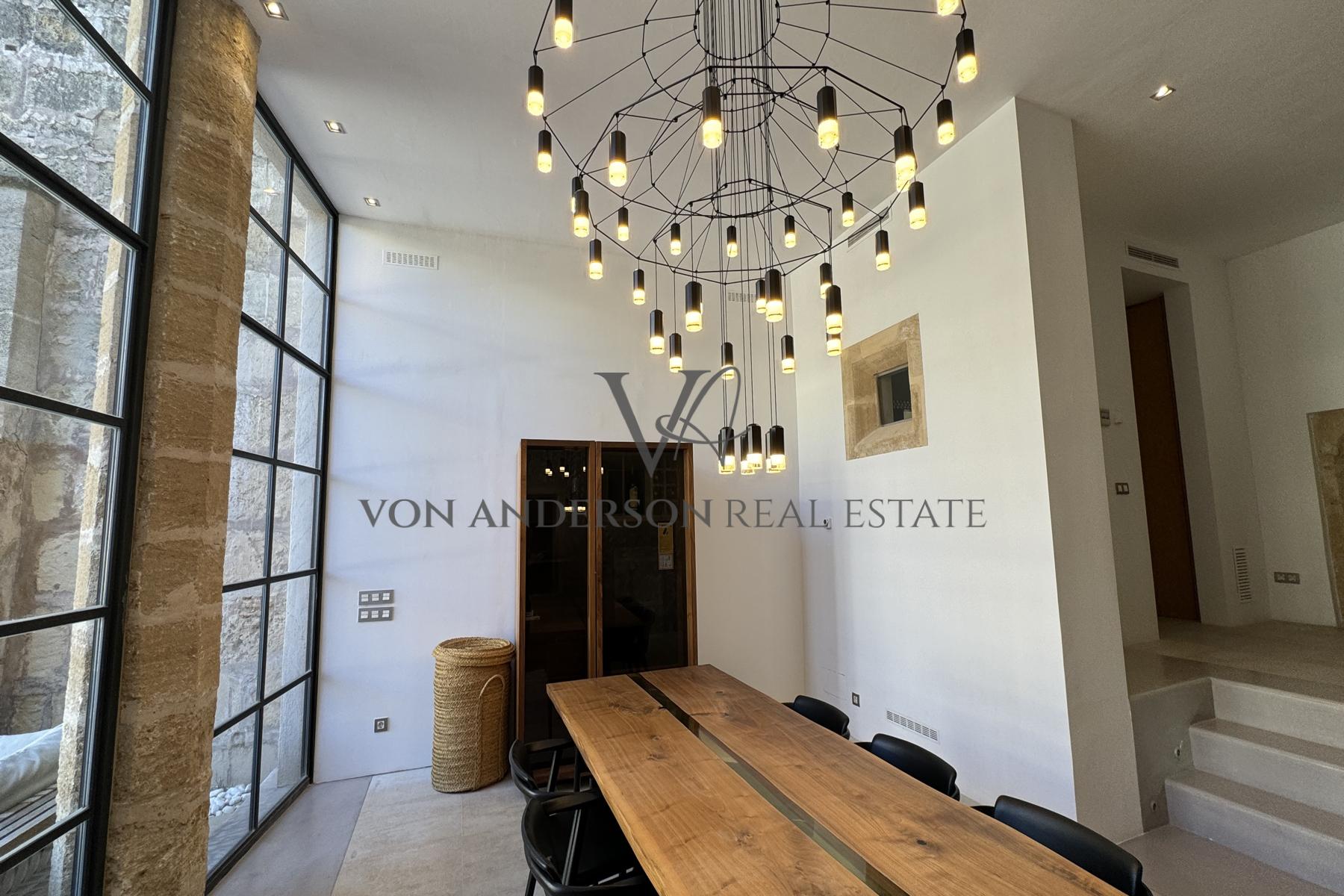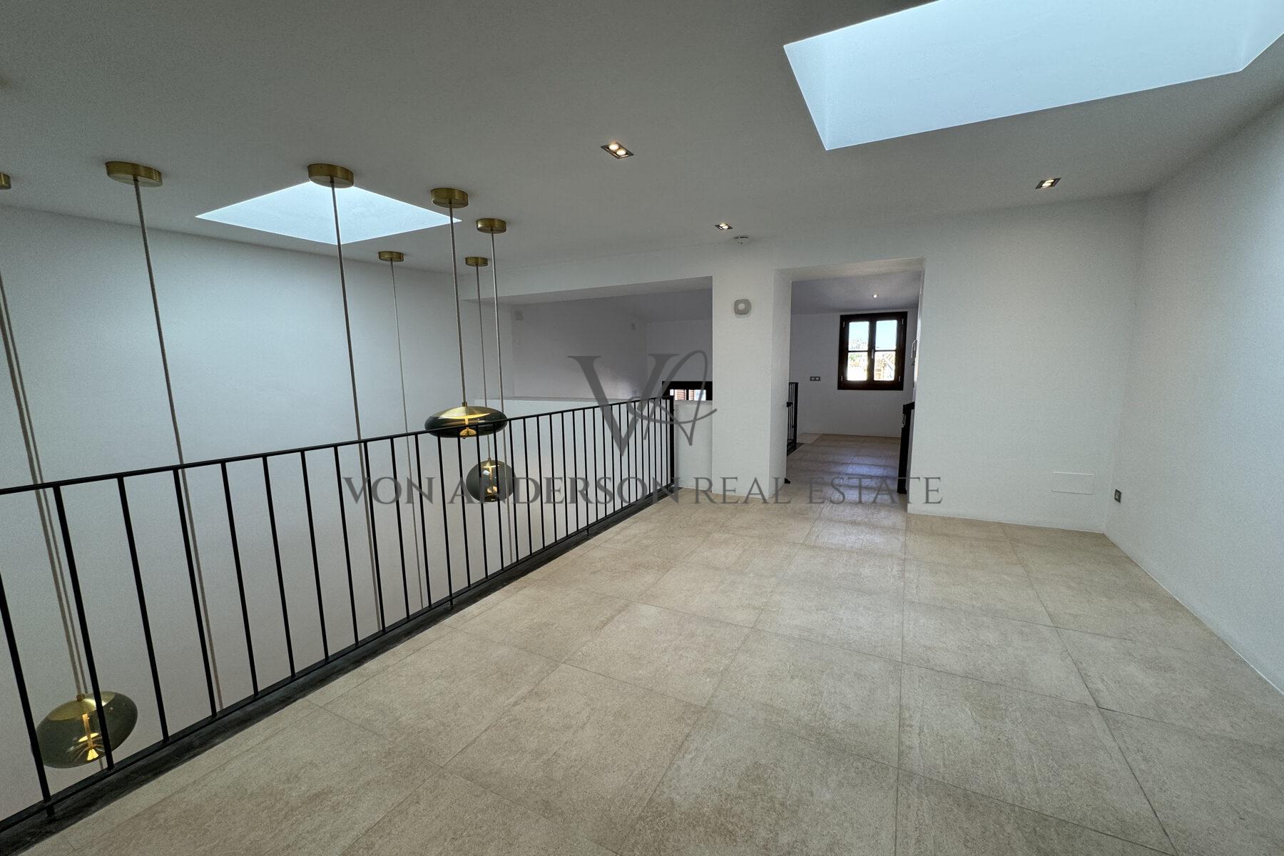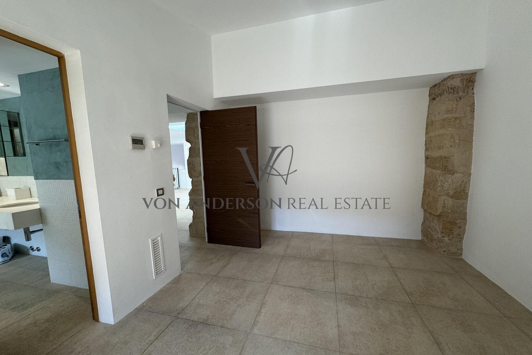 This exceptional townhouse, situated in the heart of Pollensa on the scenic north east area of Mallorca, boasts a striking modern design fused seamlessly with notable architectural elements such as beautiful wooden features and ornate stone arches throughout.
