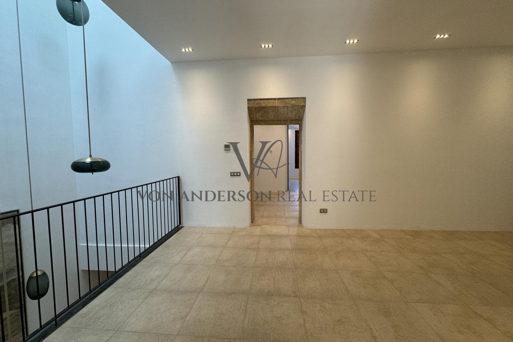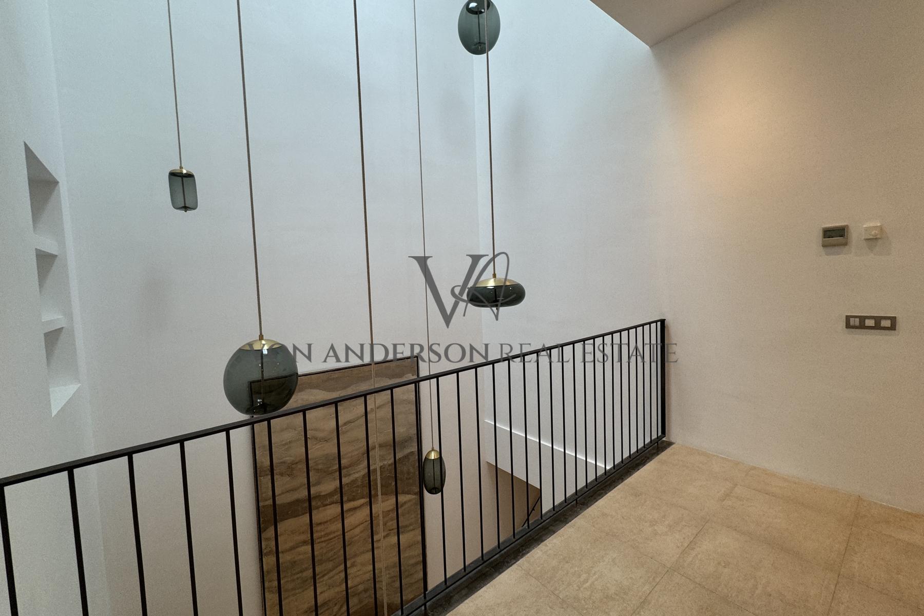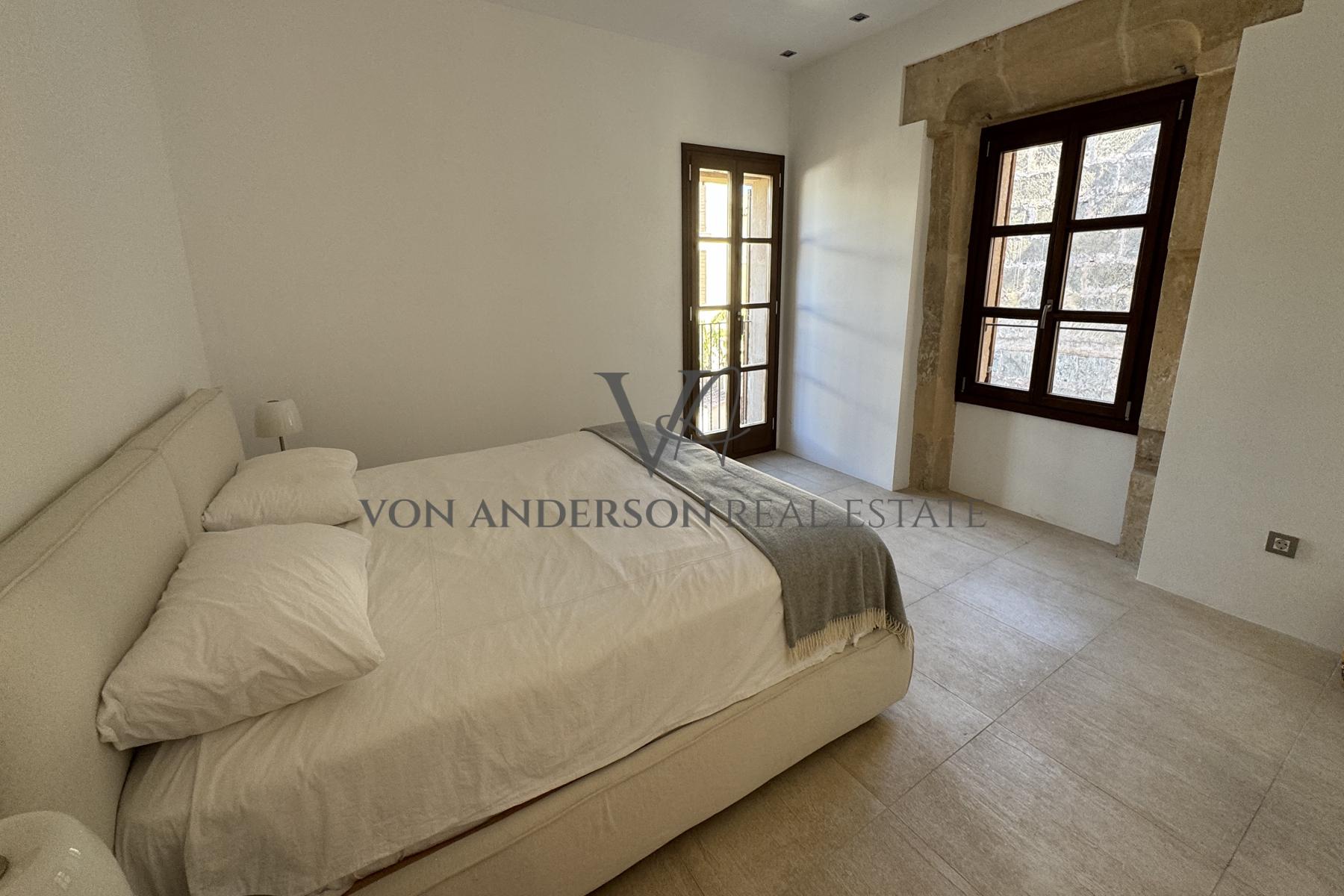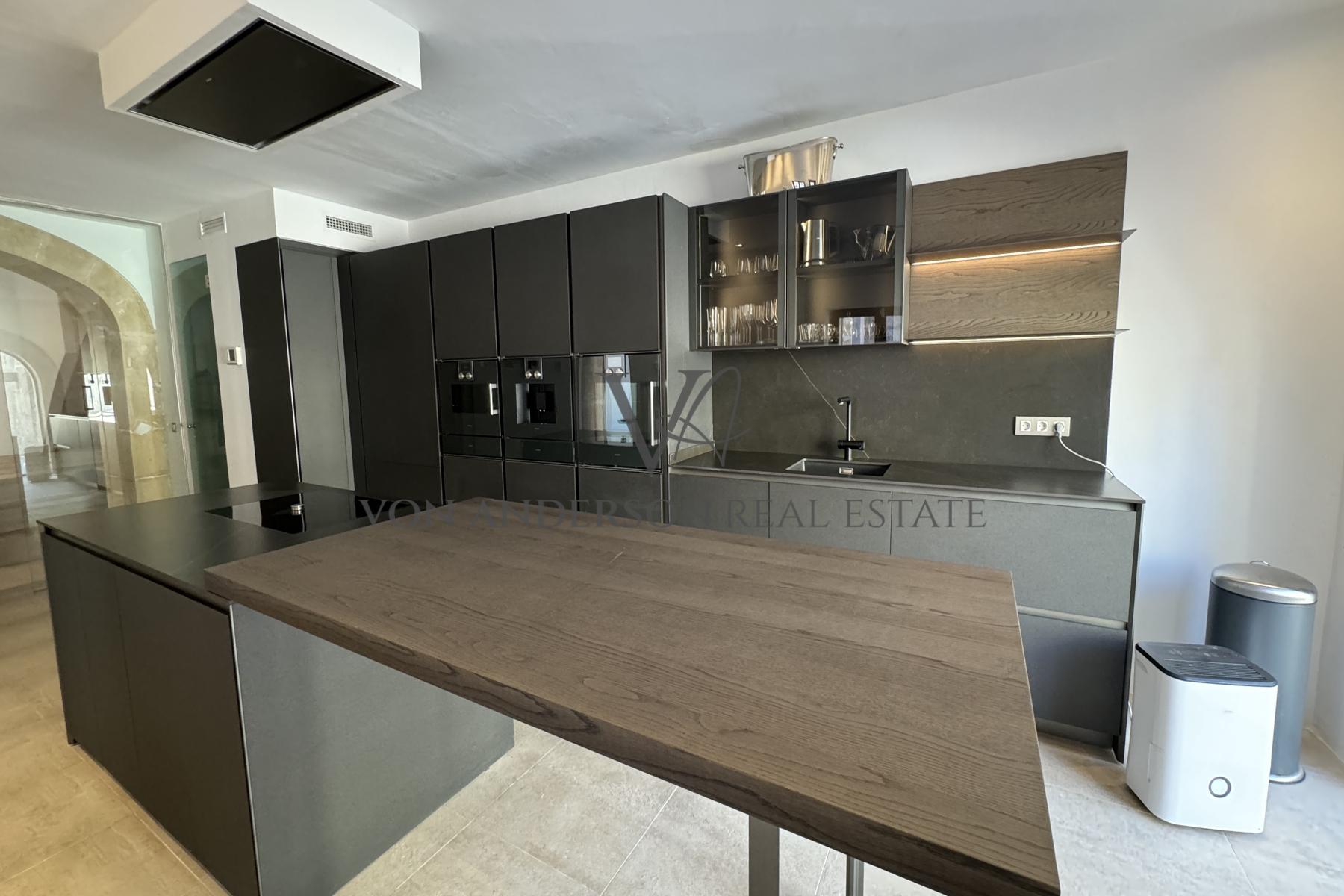 This exceptional townhouse, situated in the heart of Pollensa on the scenic north east area of Mallorca, boasts a striking modern design fused seamlessly with notable architectural elements such as beautiful wooden features and ornate stone arches throughout.