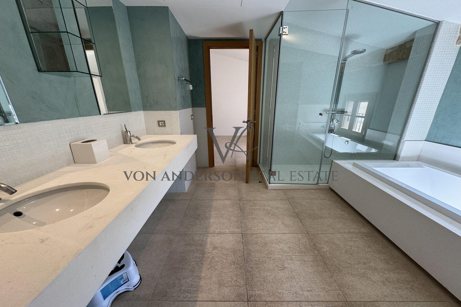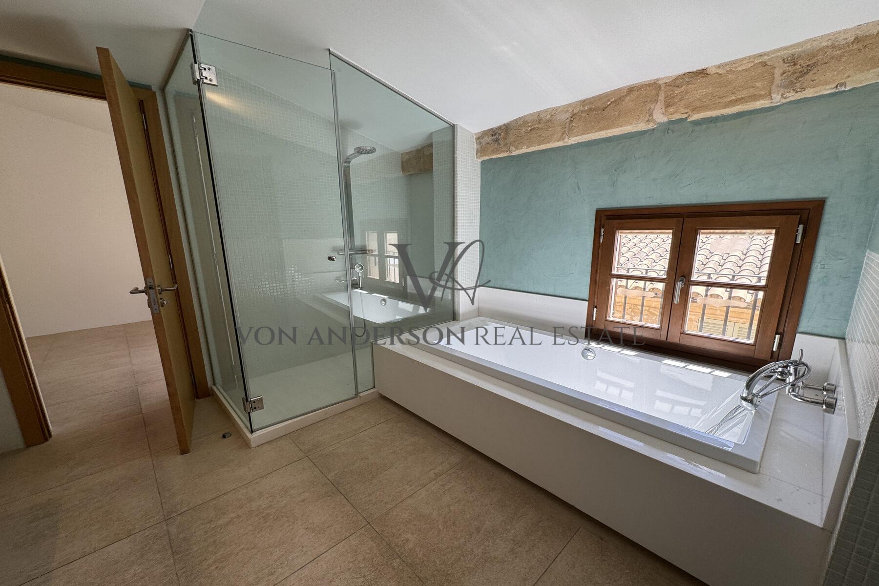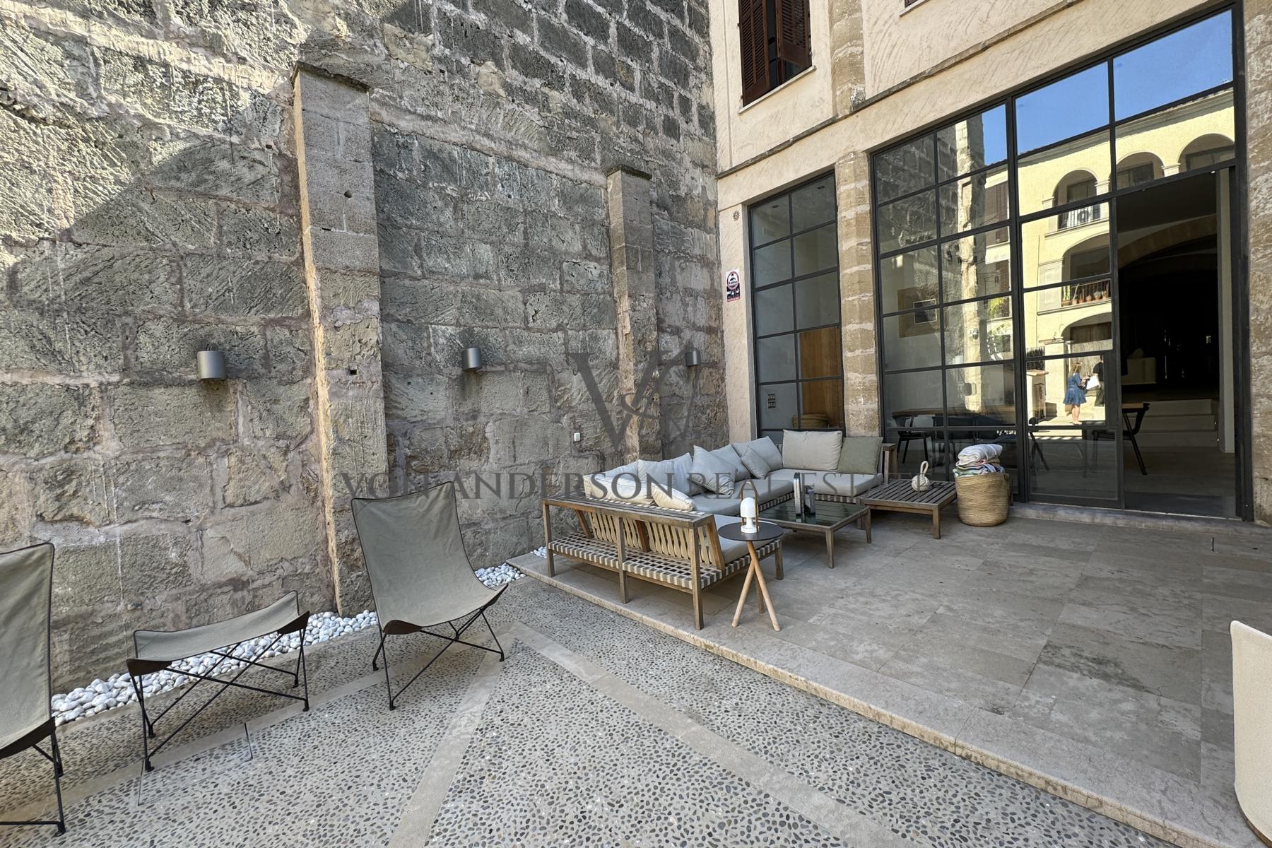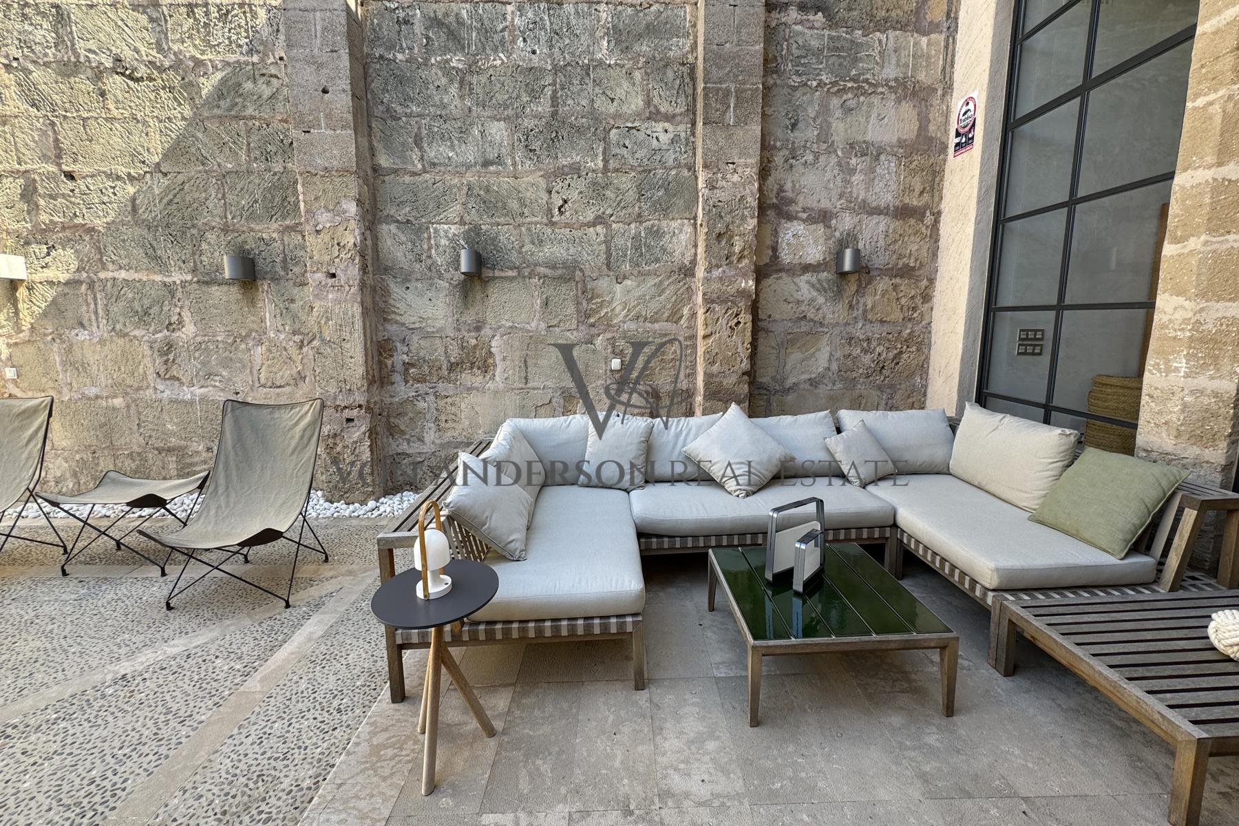 This exceptional townhouse, situated in the heart of Pollensa on the scenic north east area of Mallorca, boasts a striking modern design fused seamlessly with notable architectural elements such as beautiful wooden features and ornate stone arches throughout.